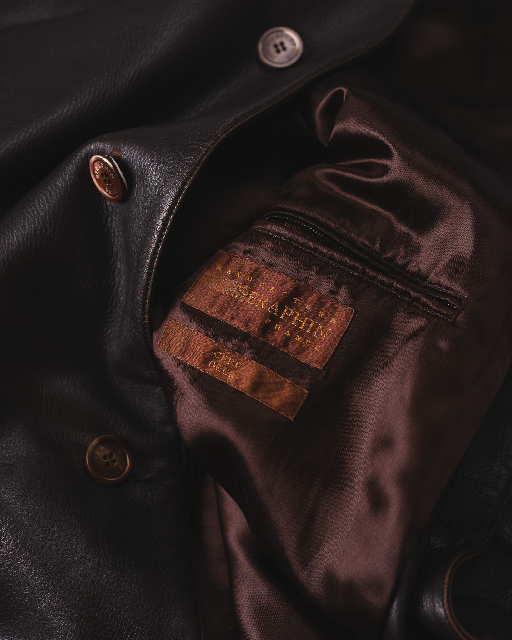 本作は、そのセラファンが1990年代後半から2000年代にかけて手掛けた、極上のディアスキンを用いたバルカラーコート。
