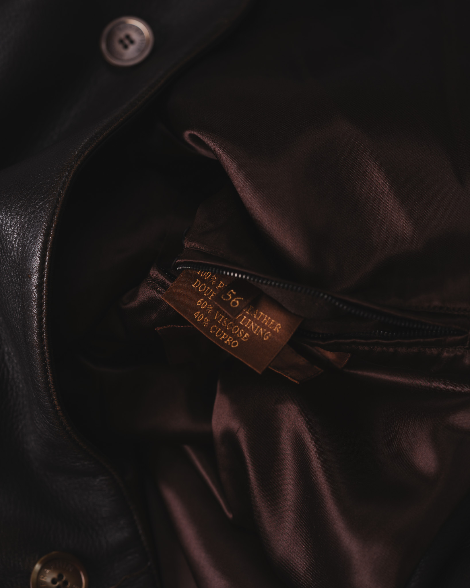 身頃から袖先に至るまで贅沢に張られた総裏仕立てのライニングは、重厚なディアスキンの重みを分散させ、着脱時の滑らかな動作を保証。
