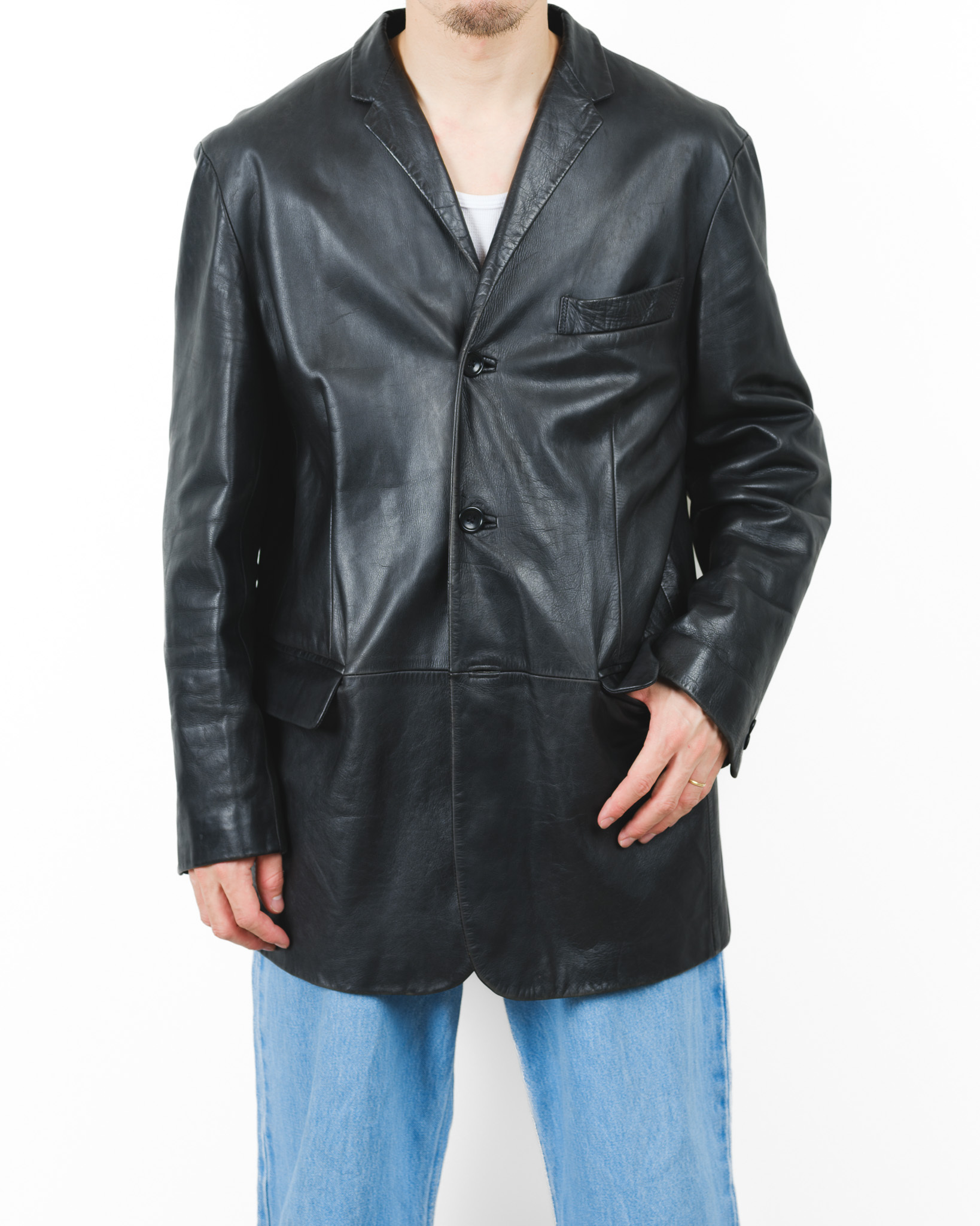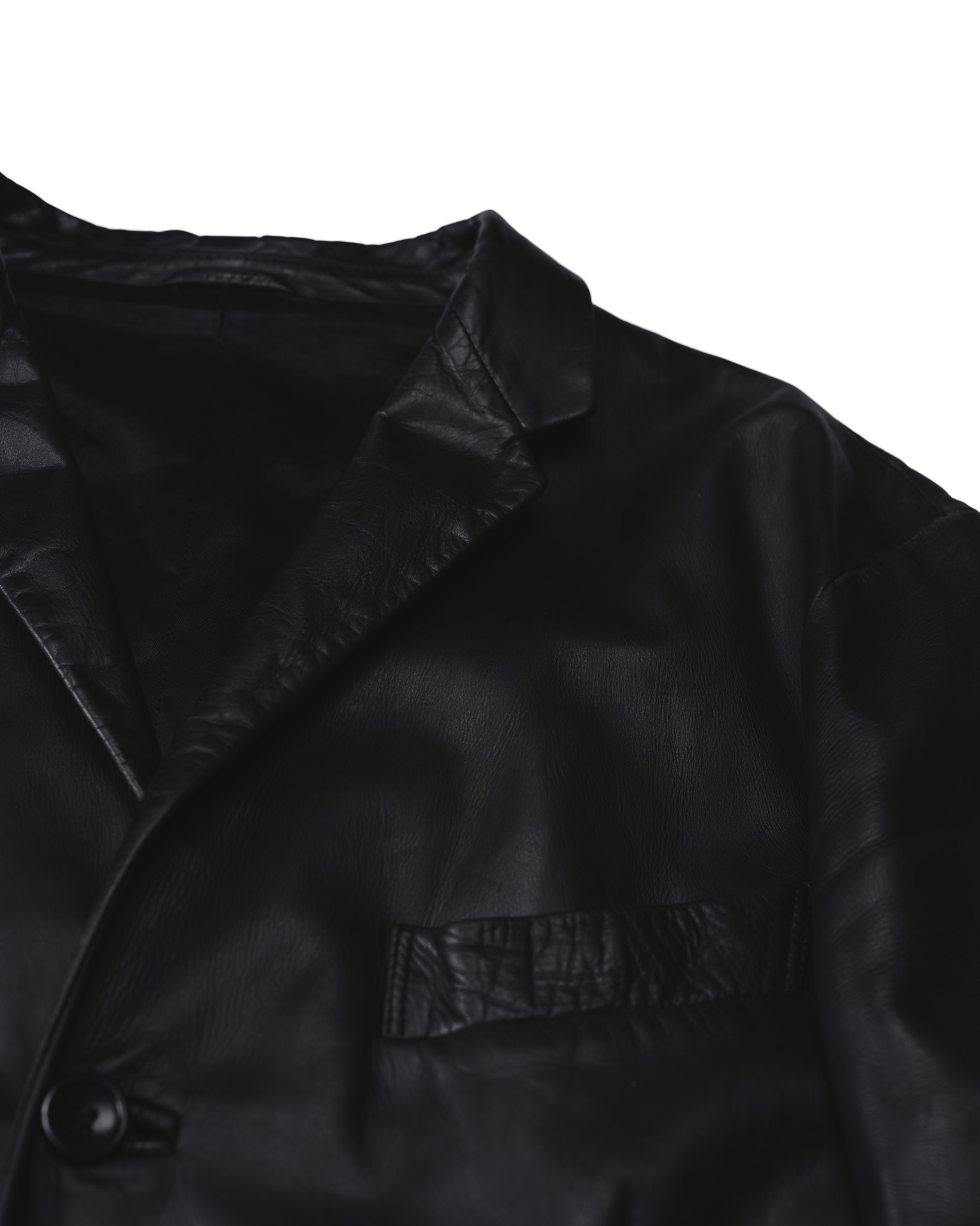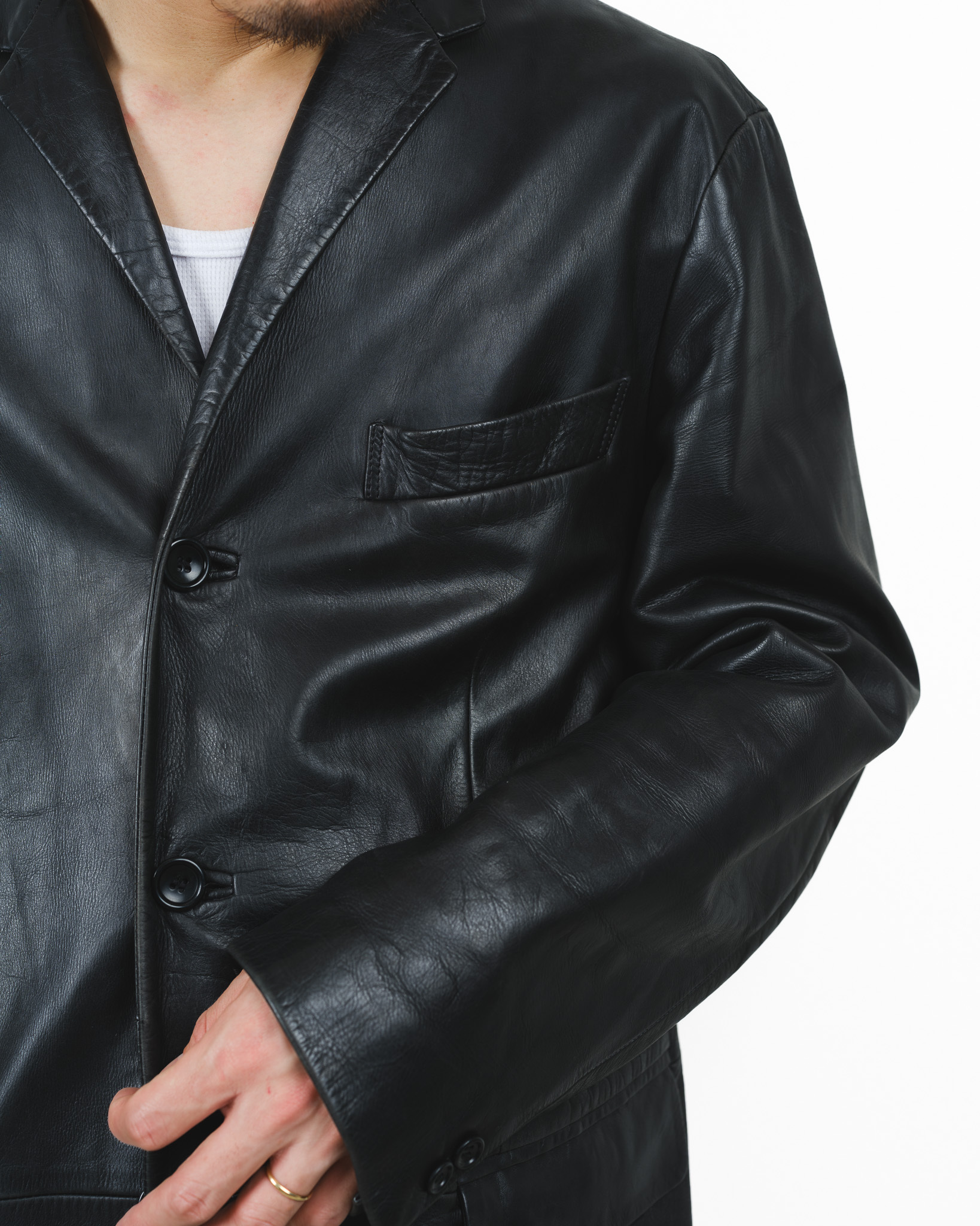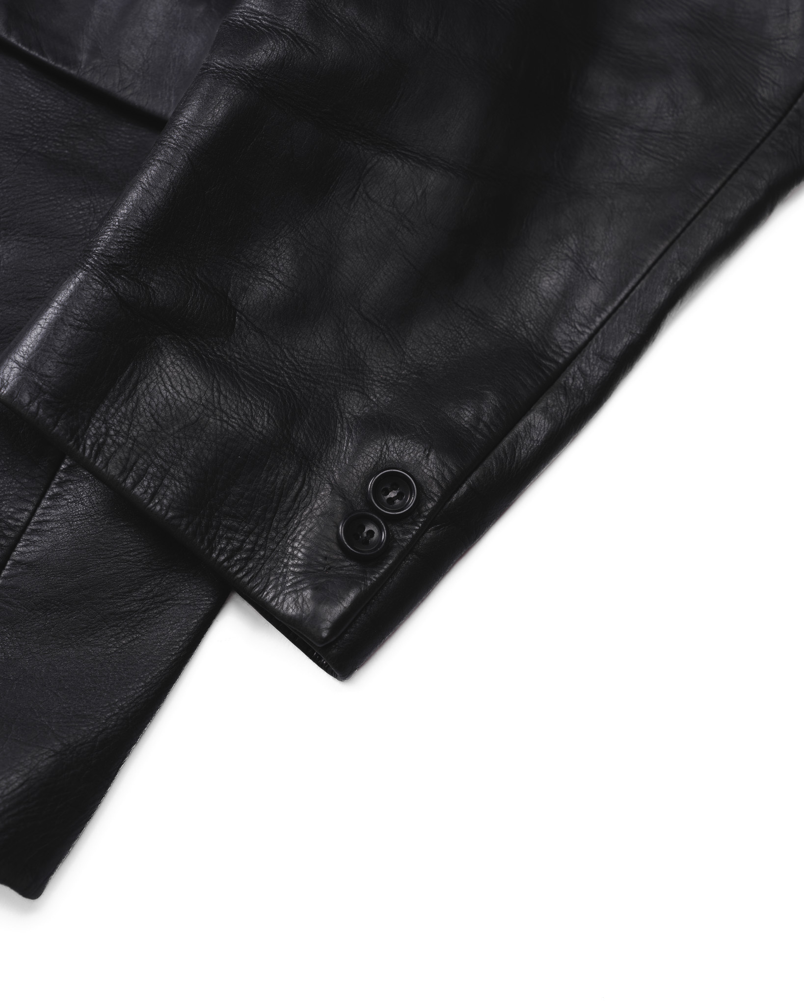 本作は、オーソドックスな3つボタンの構造を持つレザーテーラードジャケット。