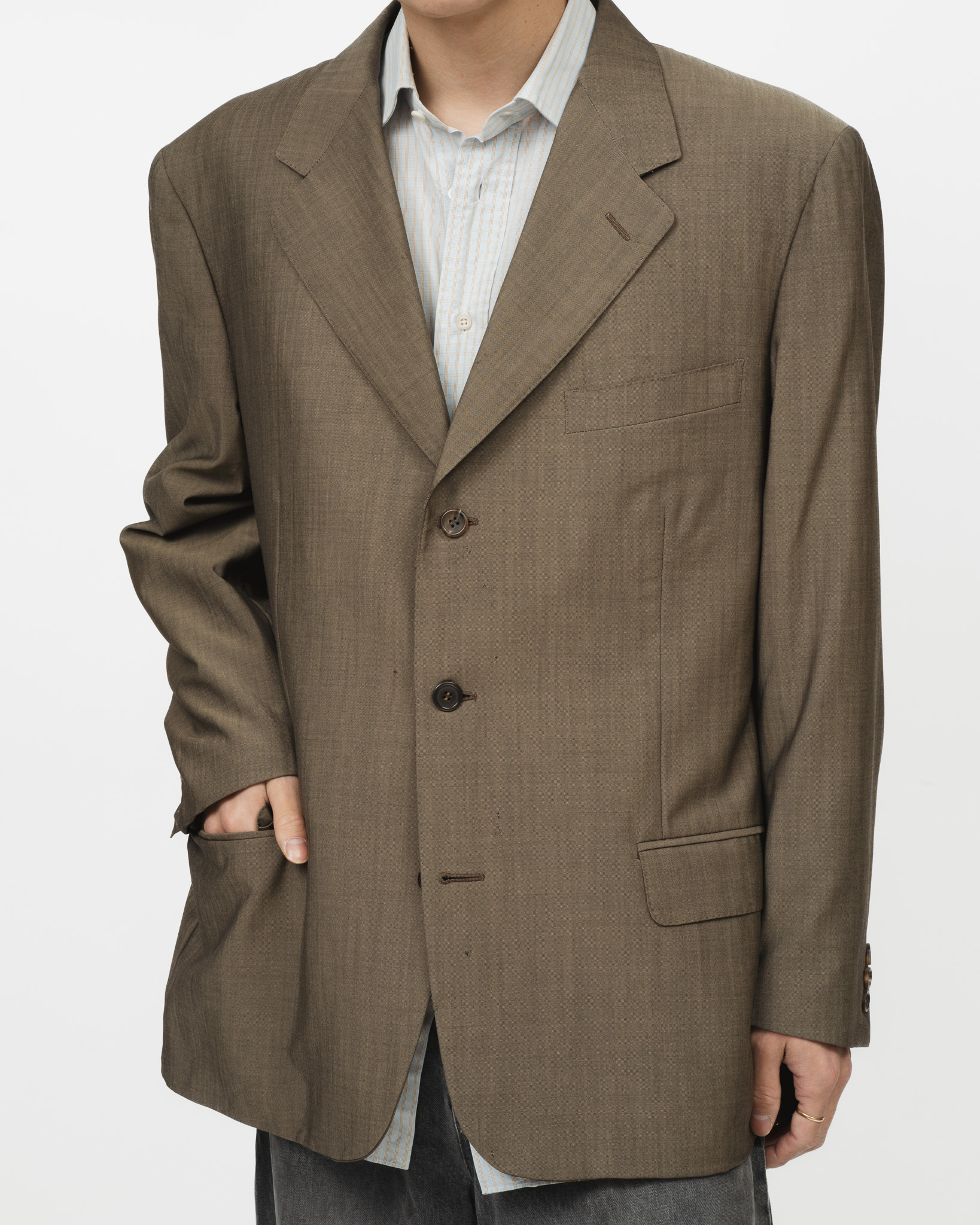 けれど、ややもすると収斂進化の如く、ある一定の時期におけるモード系メゾンのテーラードジャケットの正解形ってこれだったんじゃ?というワクワクするような浪漫くすぐる可能性も否定できませんからファッションて本当に面白い。