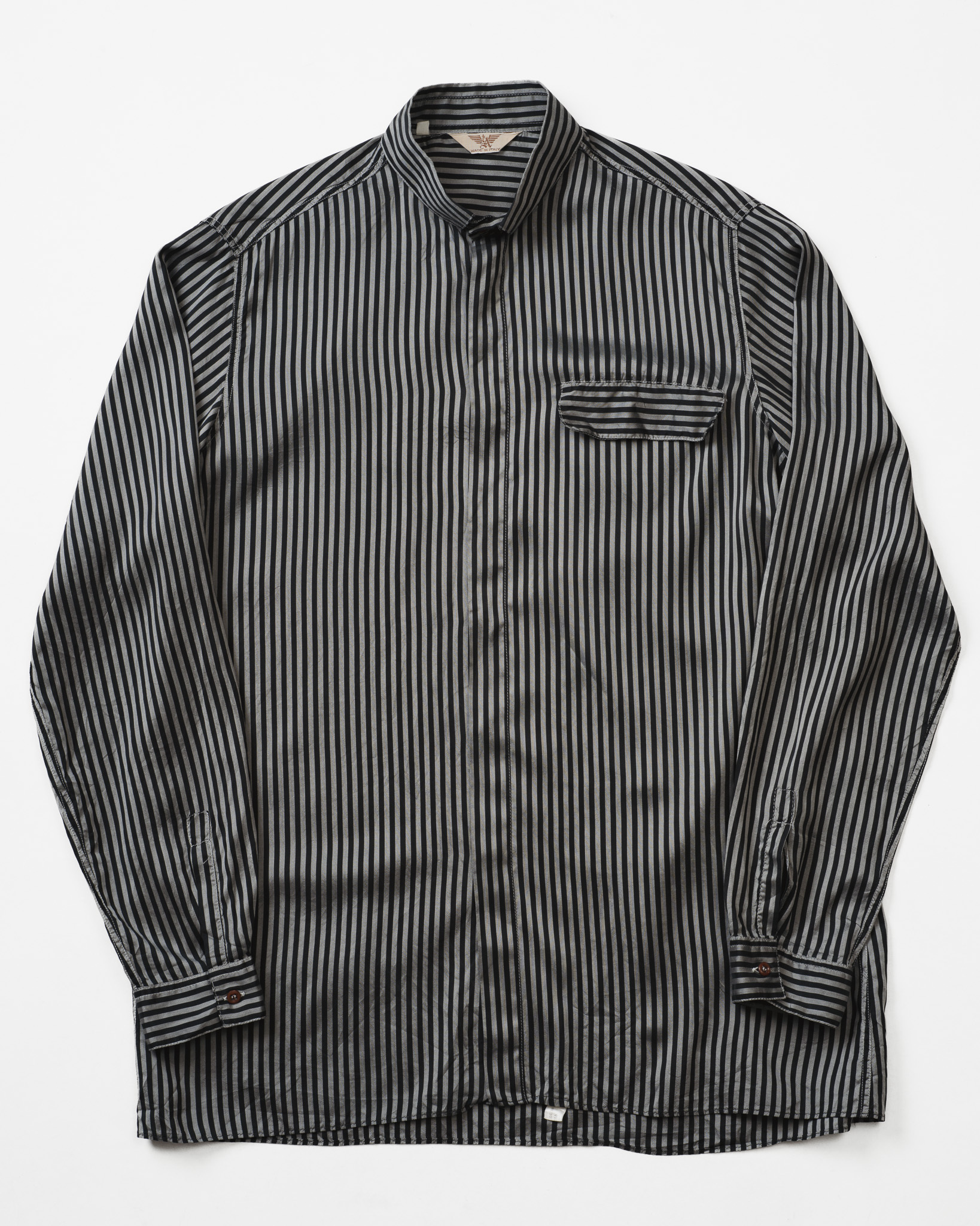 [Early 90's] "EMPORIO ARMANI” Block Stripe Pure Silk Shirt (Made in Italy)