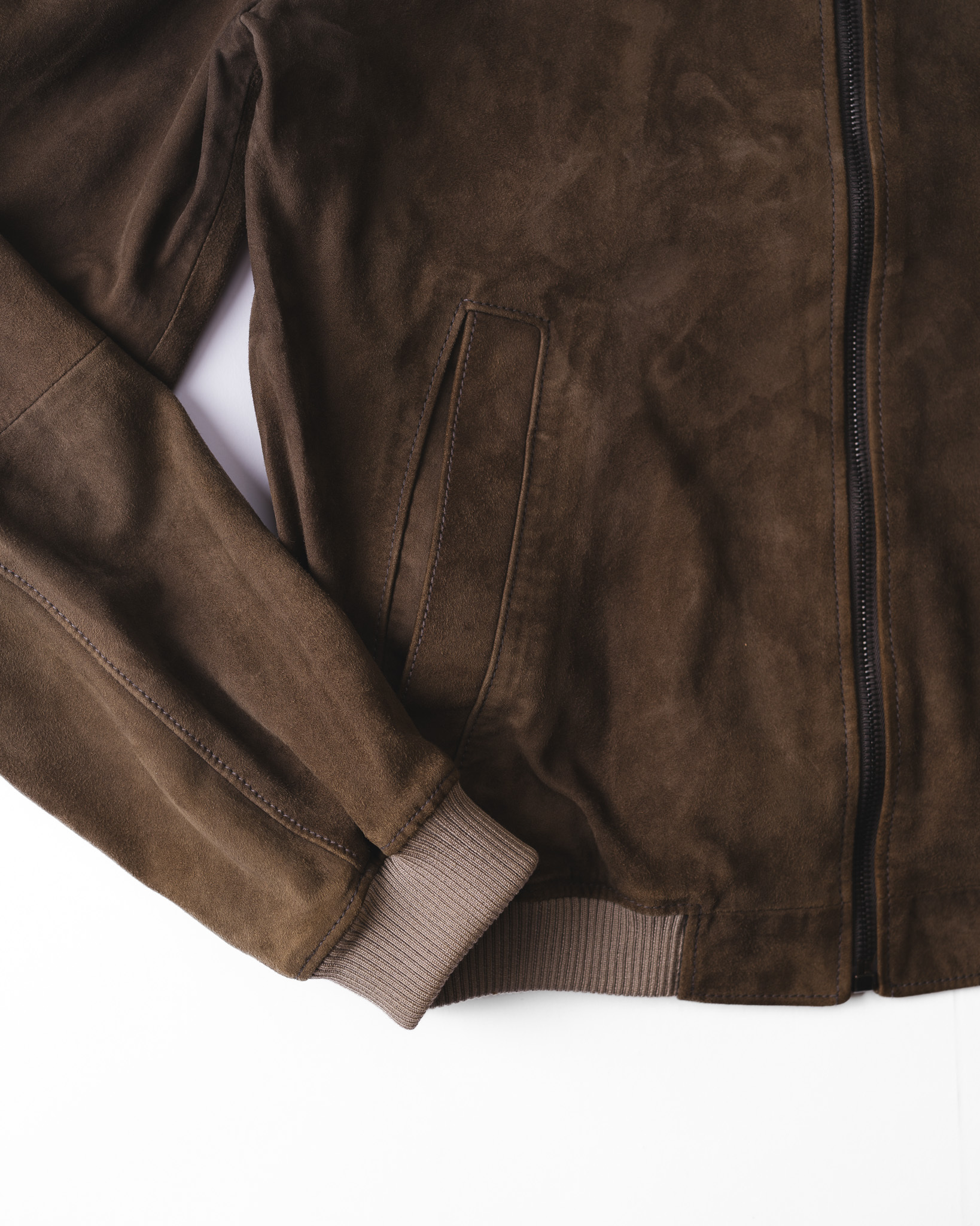 本作のスウェードボンバージャケットは、その哲学を最も純粋な形で証明しています。