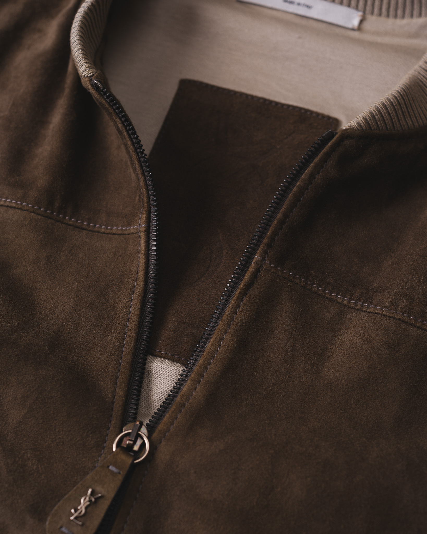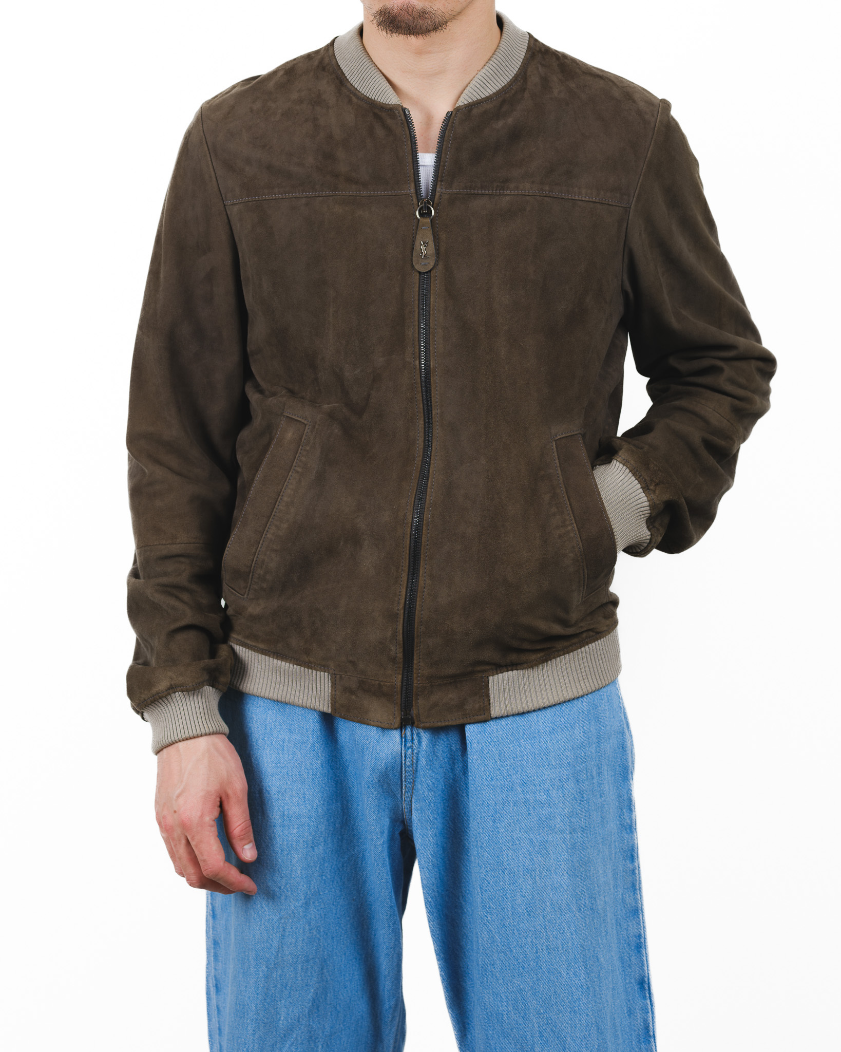 [Mid 2000s] "Yves Saint Laurent" Suede Bomber Jacket (Designed by Stefano Pilati)