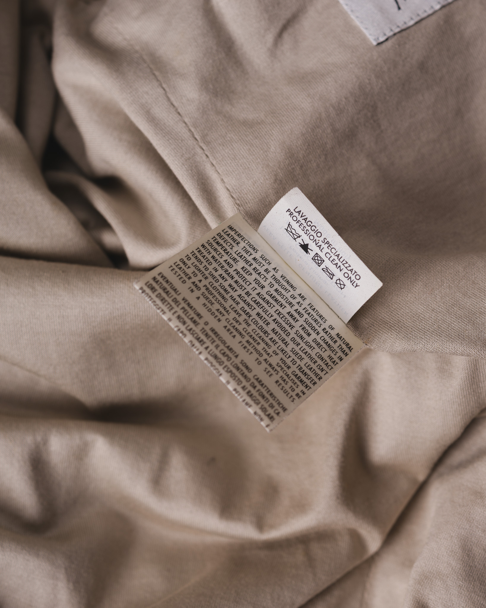 一般的なラグジュアリーレザージャケットであれば、滑りの良いキュプラや艶やかなシルクを用いるのが定石ですが、ピラーティはあえて100%コットンの、ガーゼのように甘く織られた柔らかな生地を裏地に選択しました。