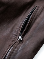 薄いディアスエードの一枚仕立てにすることで、ワイルドなまでの荒々しい表情と、しなやかな質感を用いた凹凸のある不均一なシルエットに。