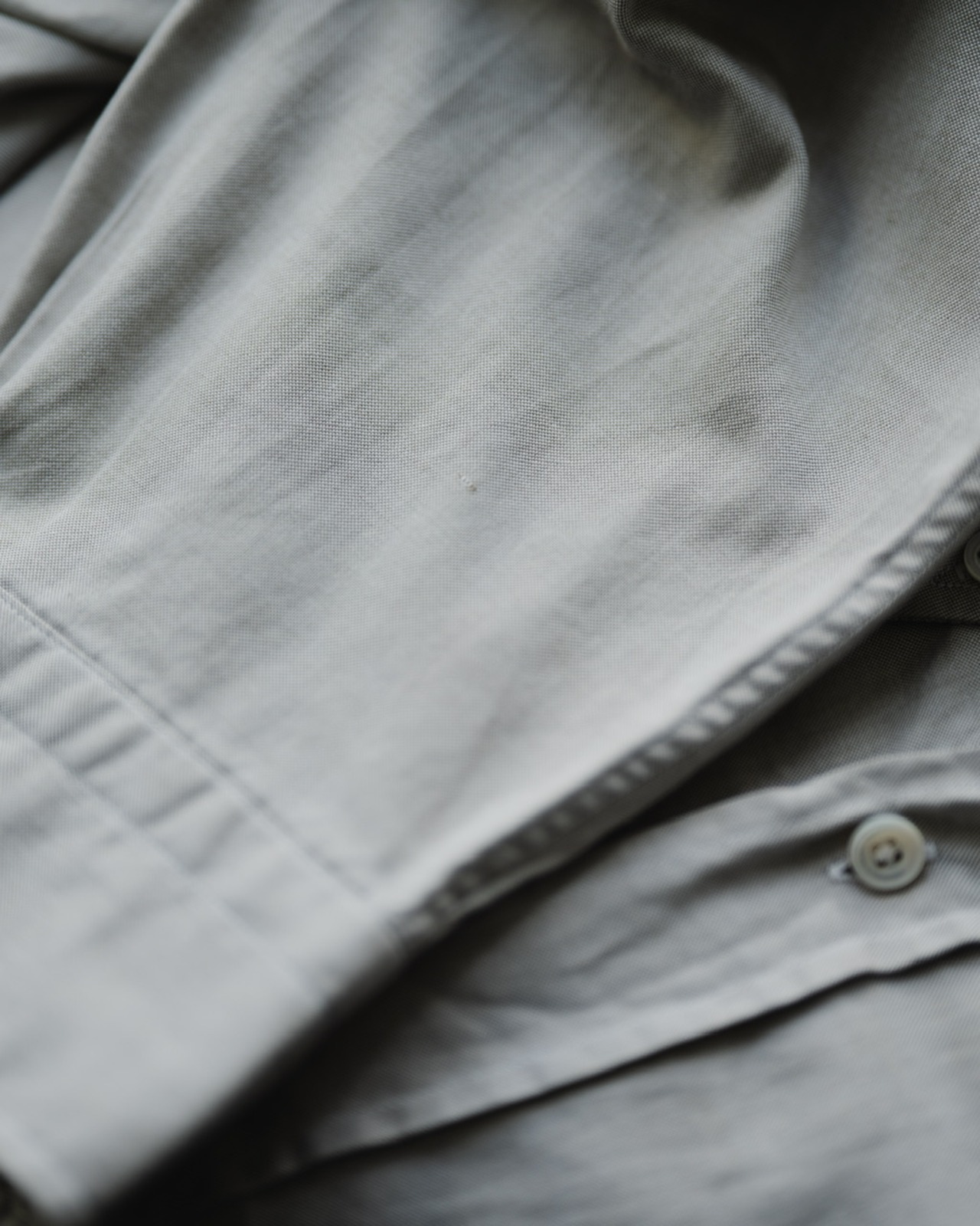 シャリ感とハリのあるコットン地のオックスフォード生地は、シャツ全体にもピンと張り詰めた空気感を漂わせ、更には剣先の長い襟はクラシカルな印象をプラス。