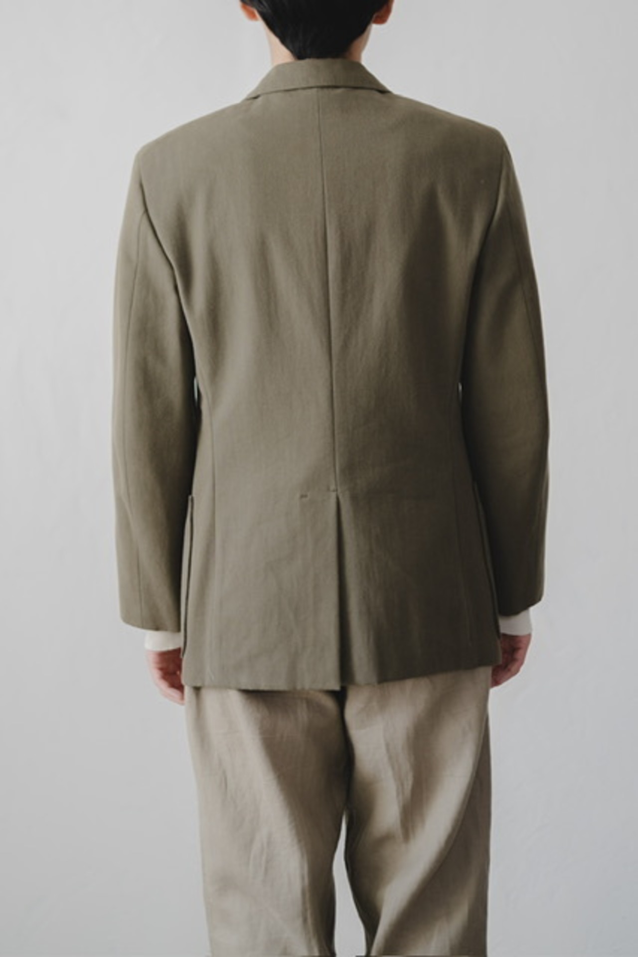 伝統的なデザインと縫製で作製しながらも、スーツではあまり見ないコットンダックを使うという面白い一枚。