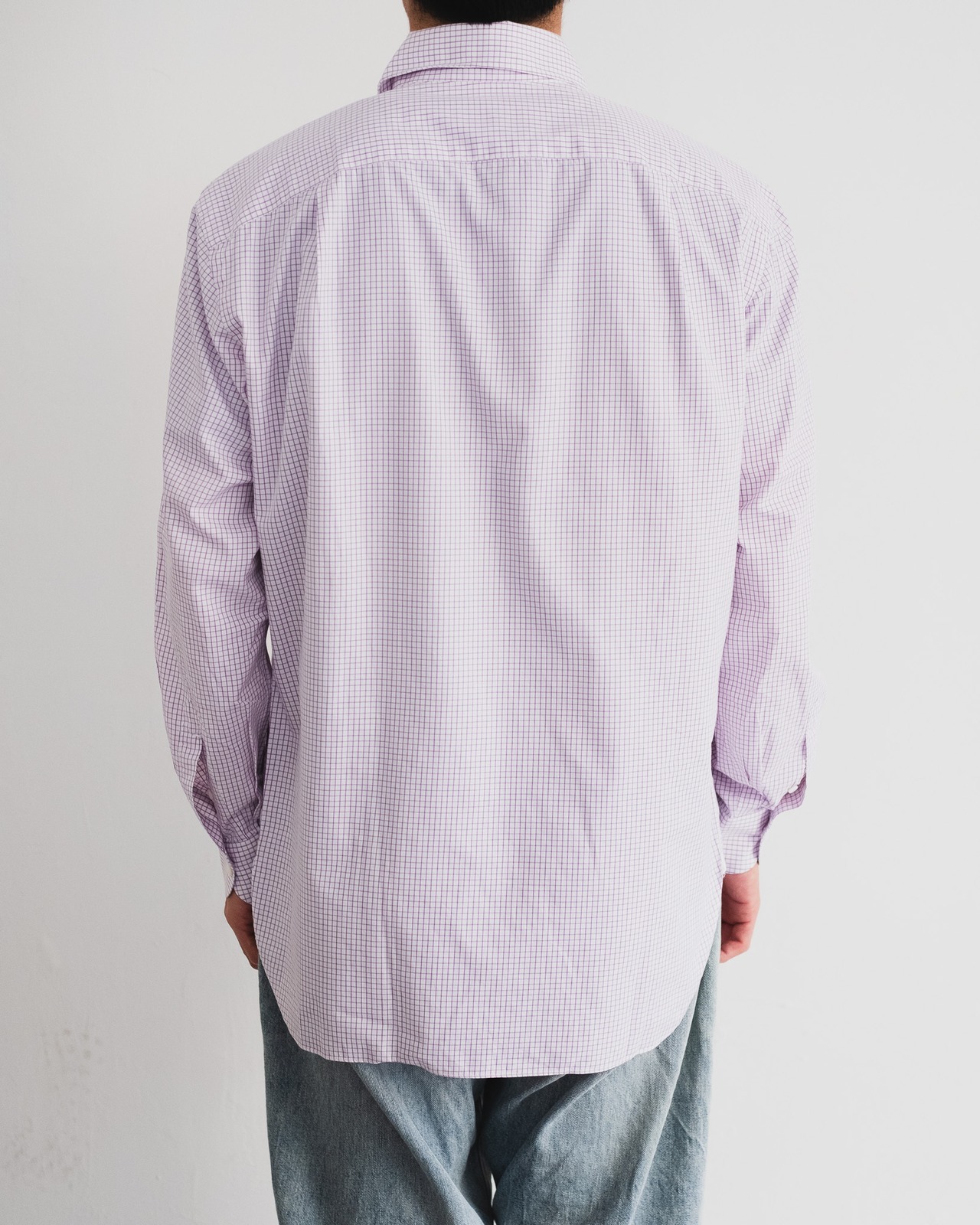 上品な色味のパープルのチェックが目を惹くレギュラーカラーシャツ。