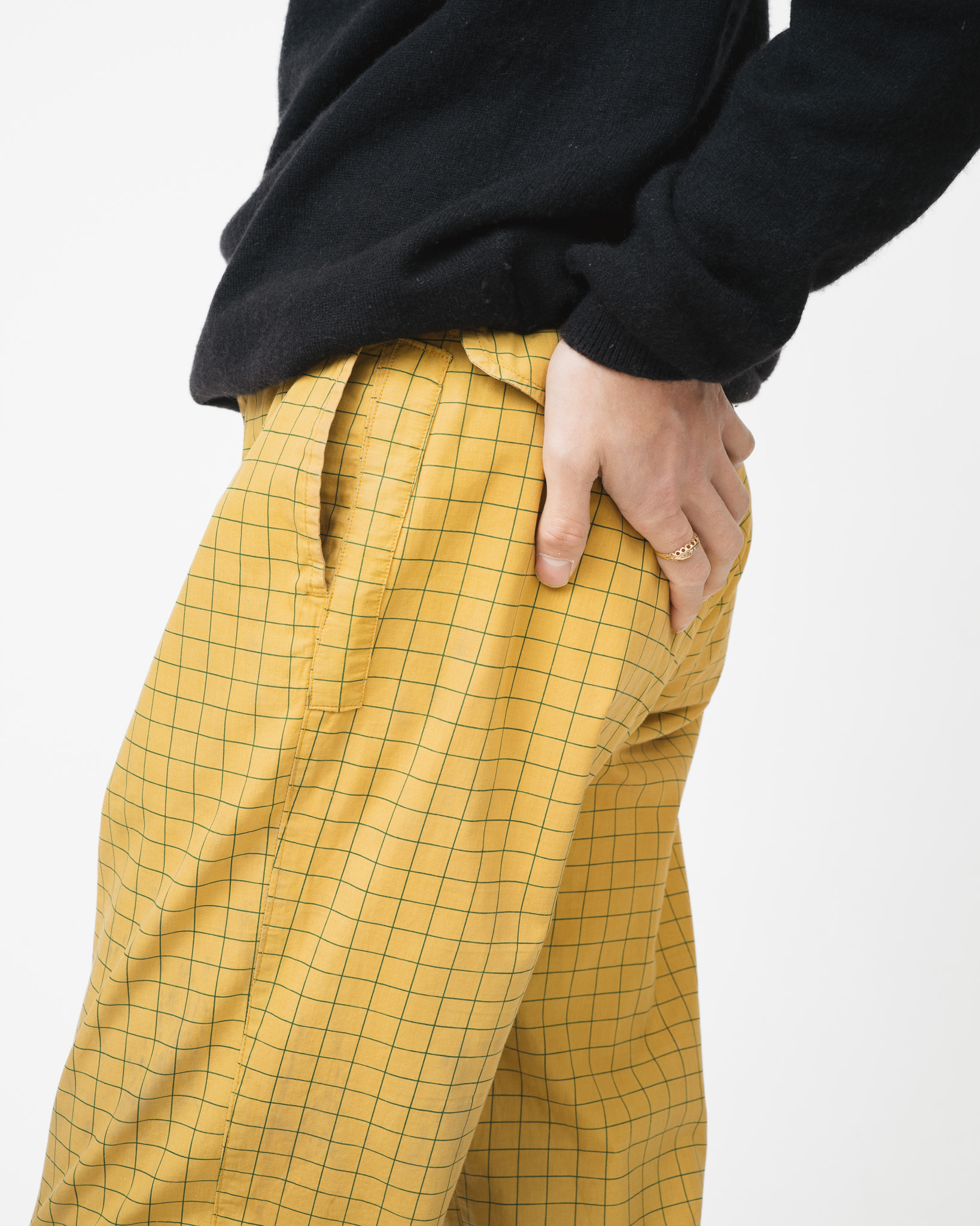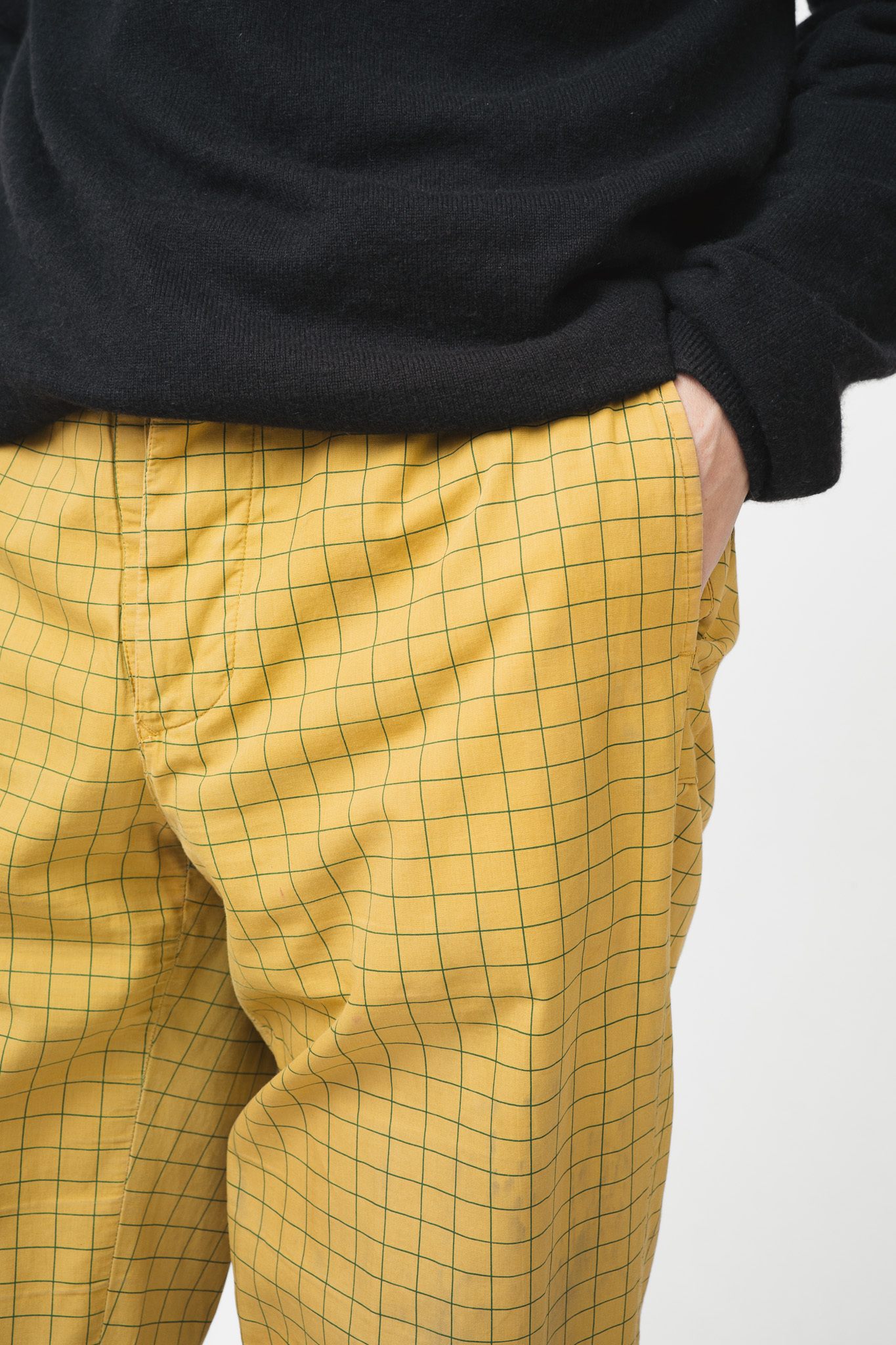 イエロー×グリーンのクラシカルなチェック柄は、まるで英国的なトラッドさを感じさせながらも、どこか抜け感のある色彩バランス。