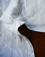 アルニスで時々見かける、特徴的なスタンドカラーのリネンシャツ。