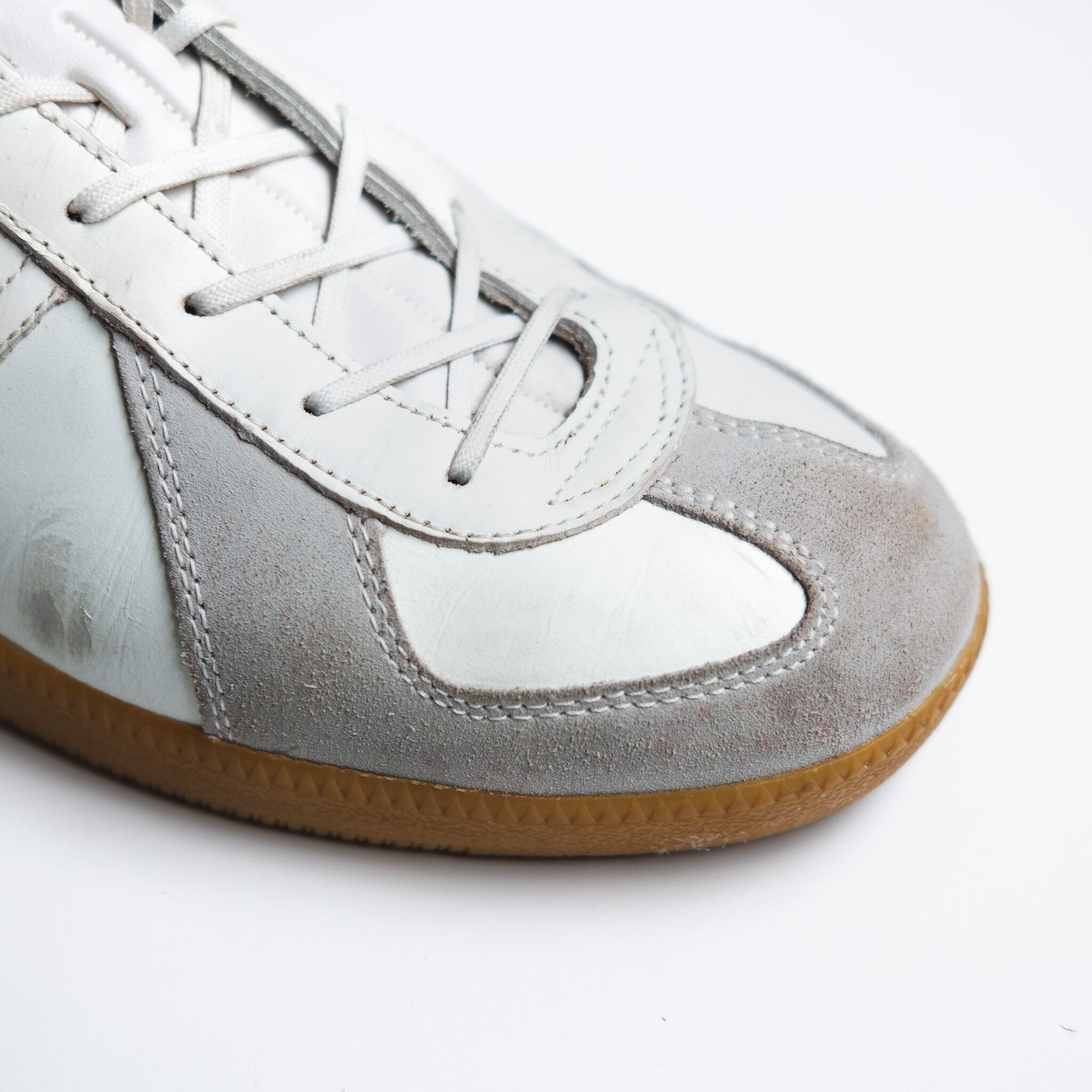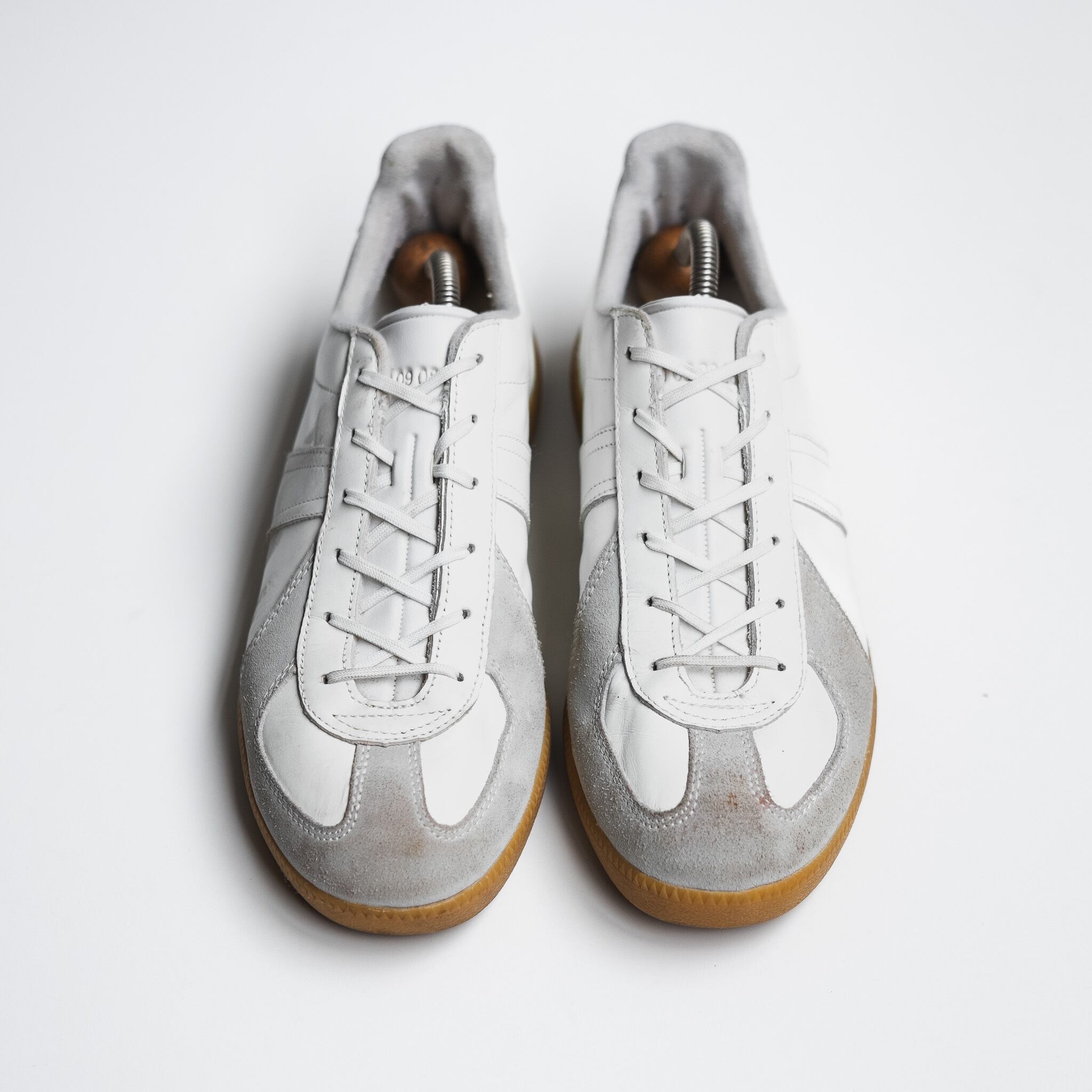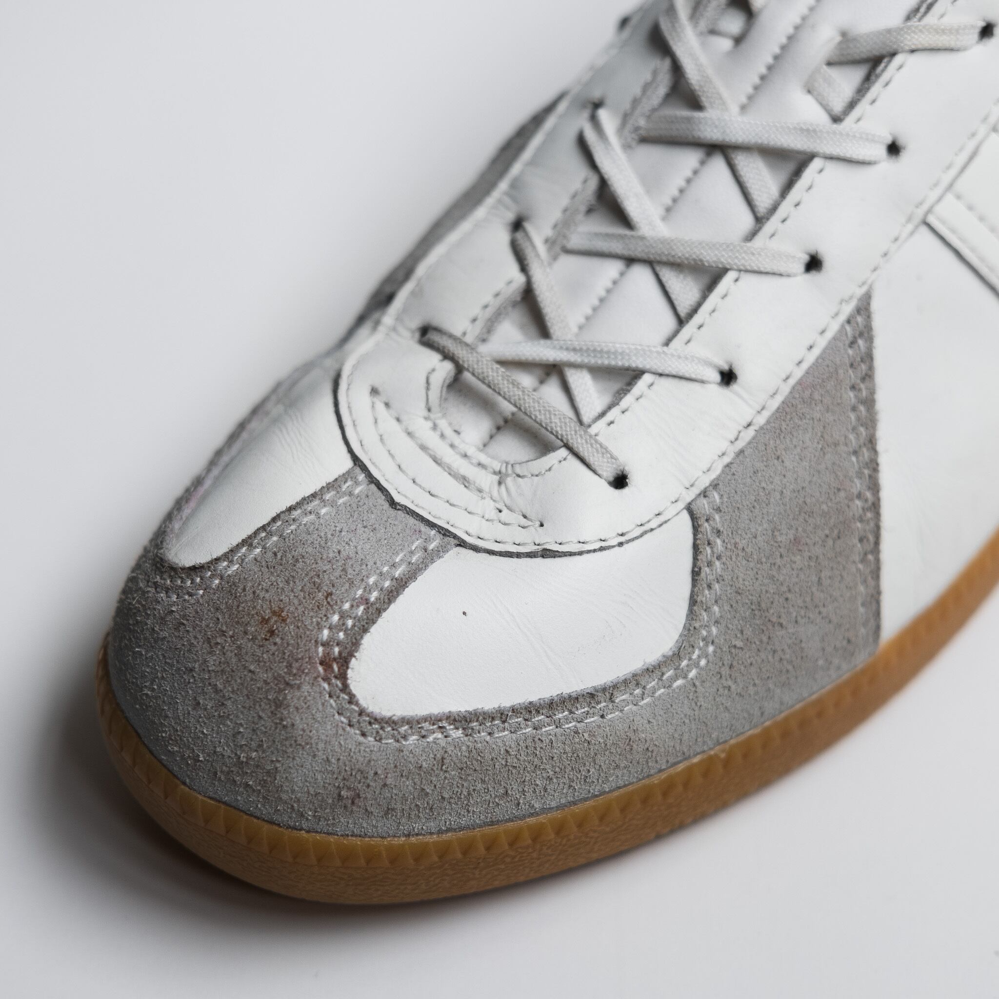 ドイツ軍のトレーニングシューズとして1970年代〜1994年にかけて、支給されていたジャーマントレーナー。細身のラストにレザーとスウェードの切り替え、そのホワイトのアッパーとコントラストを生み出すガムラバー...。
