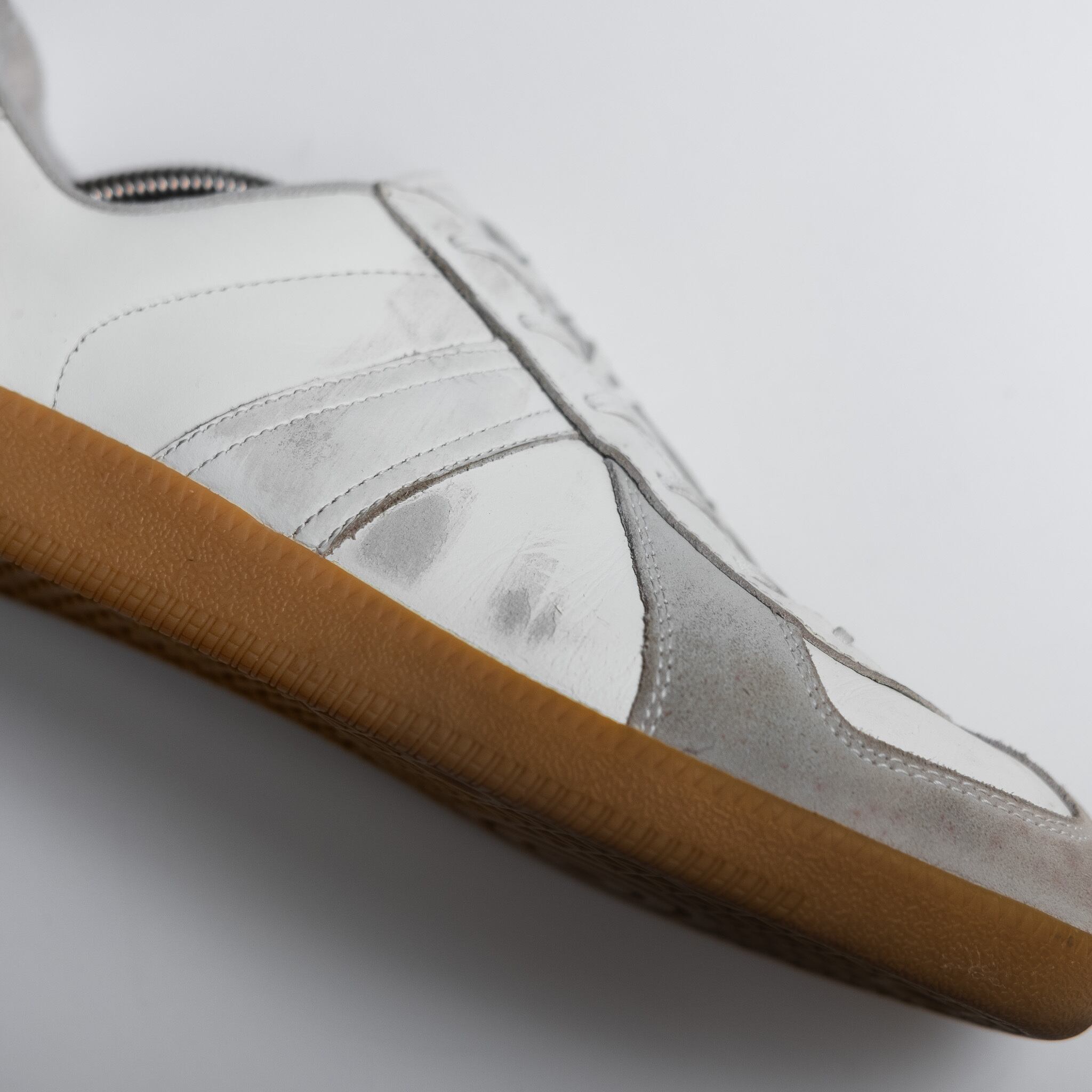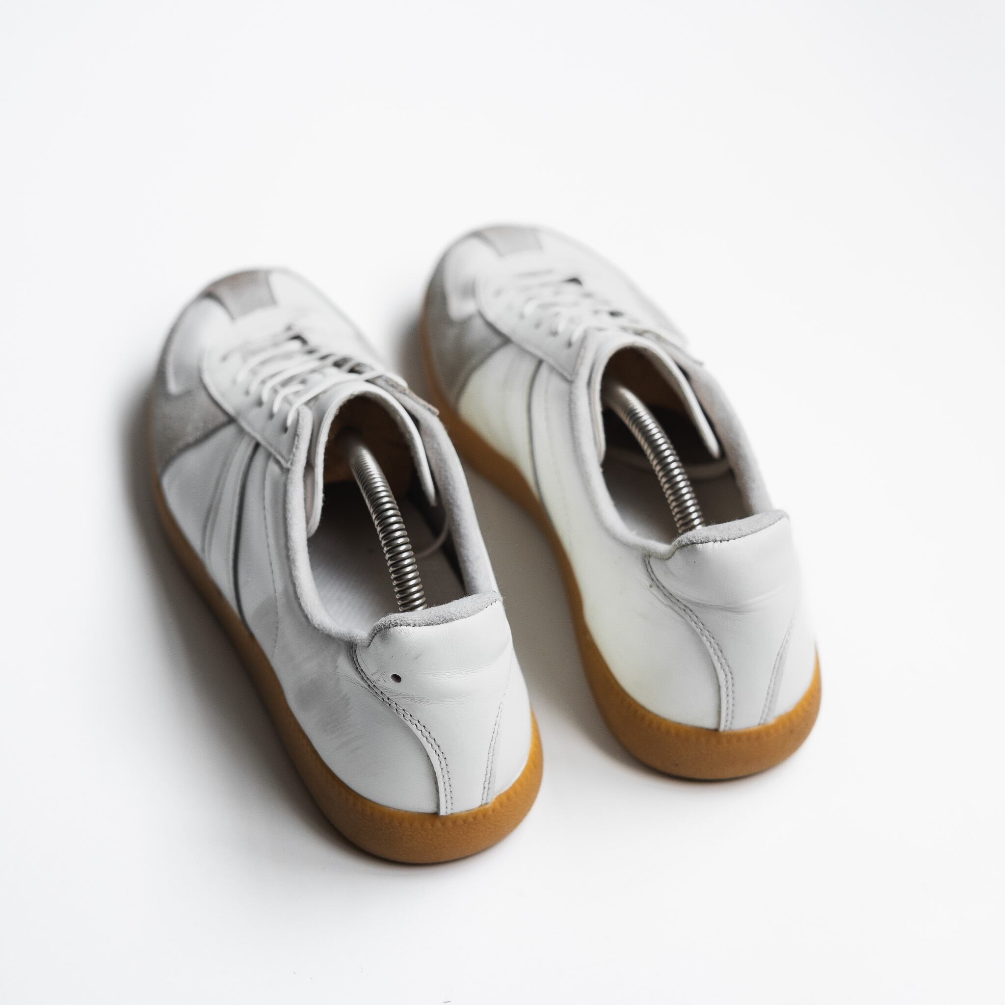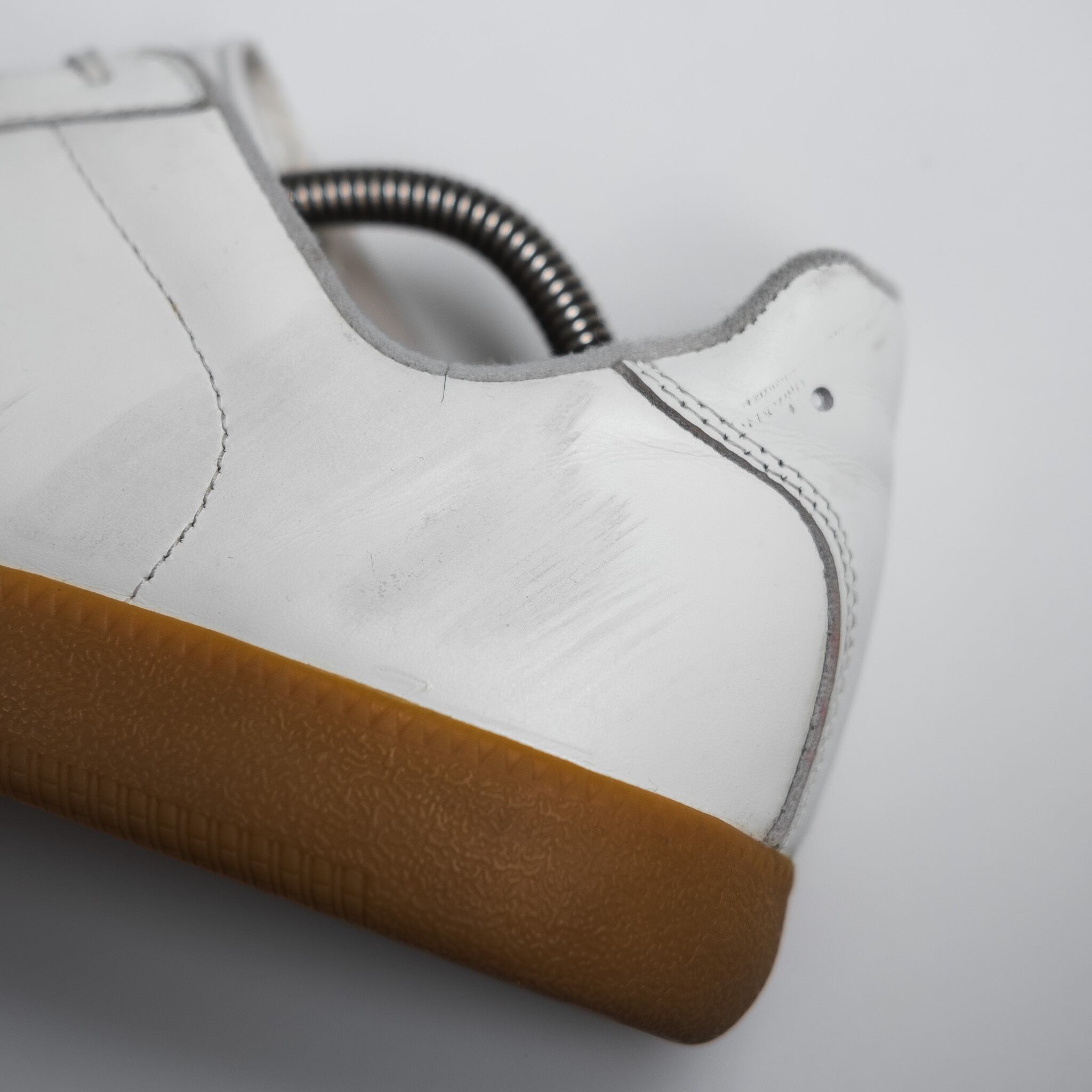 ドイツ軍のトレーニングシューズとして1970年代〜1994年にかけて、支給されていたジャーマントレーナー。細身のラストにレザーとスウェードの切り替え、そのホワイトのアッパーとコントラストを生み出すガムラバー...。