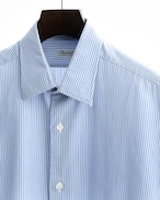 良い意味でストライプシャツらしくない、大人っぽい印象を与えるのはこの繊細なストライプと、最高品質のコットンが故の、光沢とハリを持つ生地感だからでしょう。