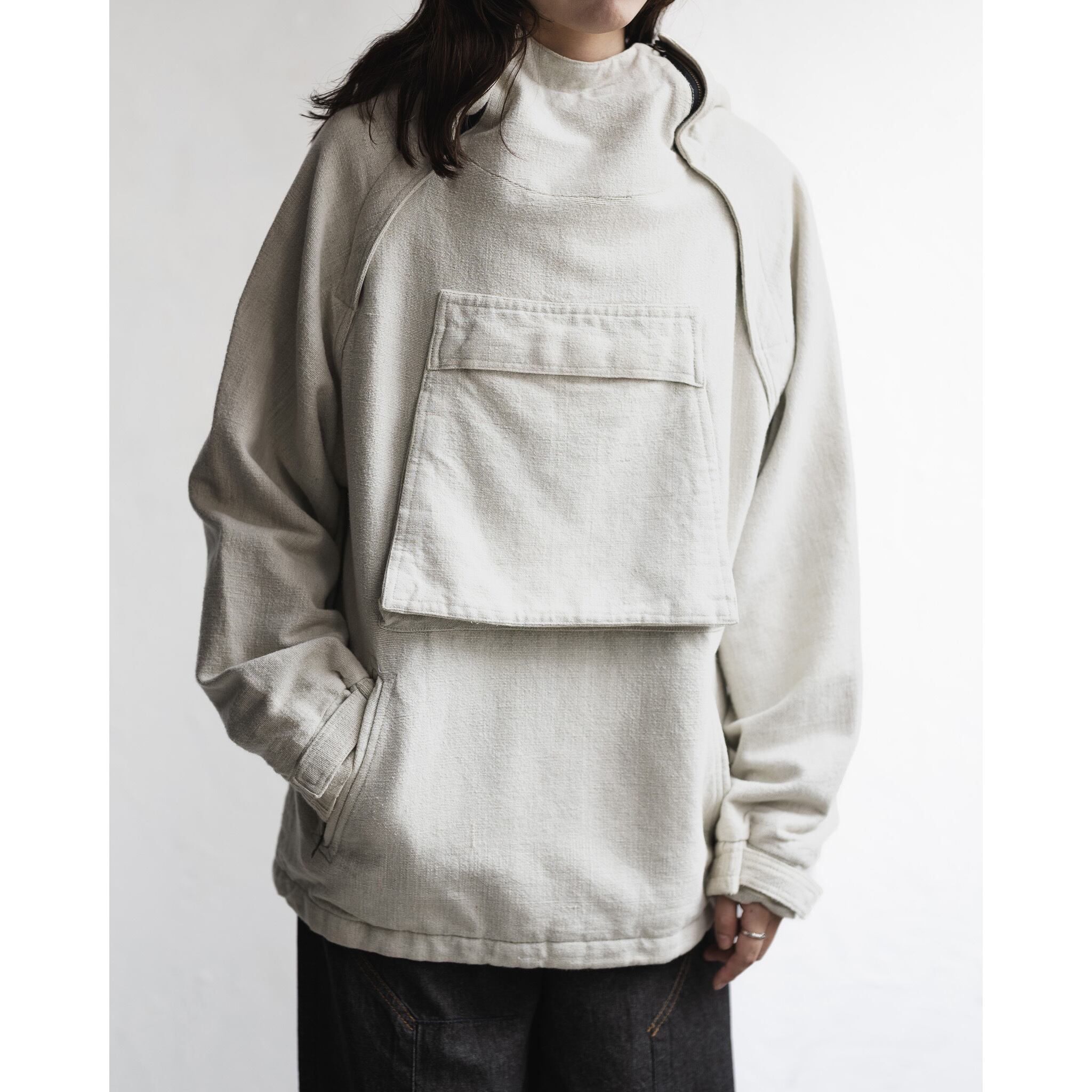 独特な色合いと風合いが雰囲気を放つプルオーバーパーカ。