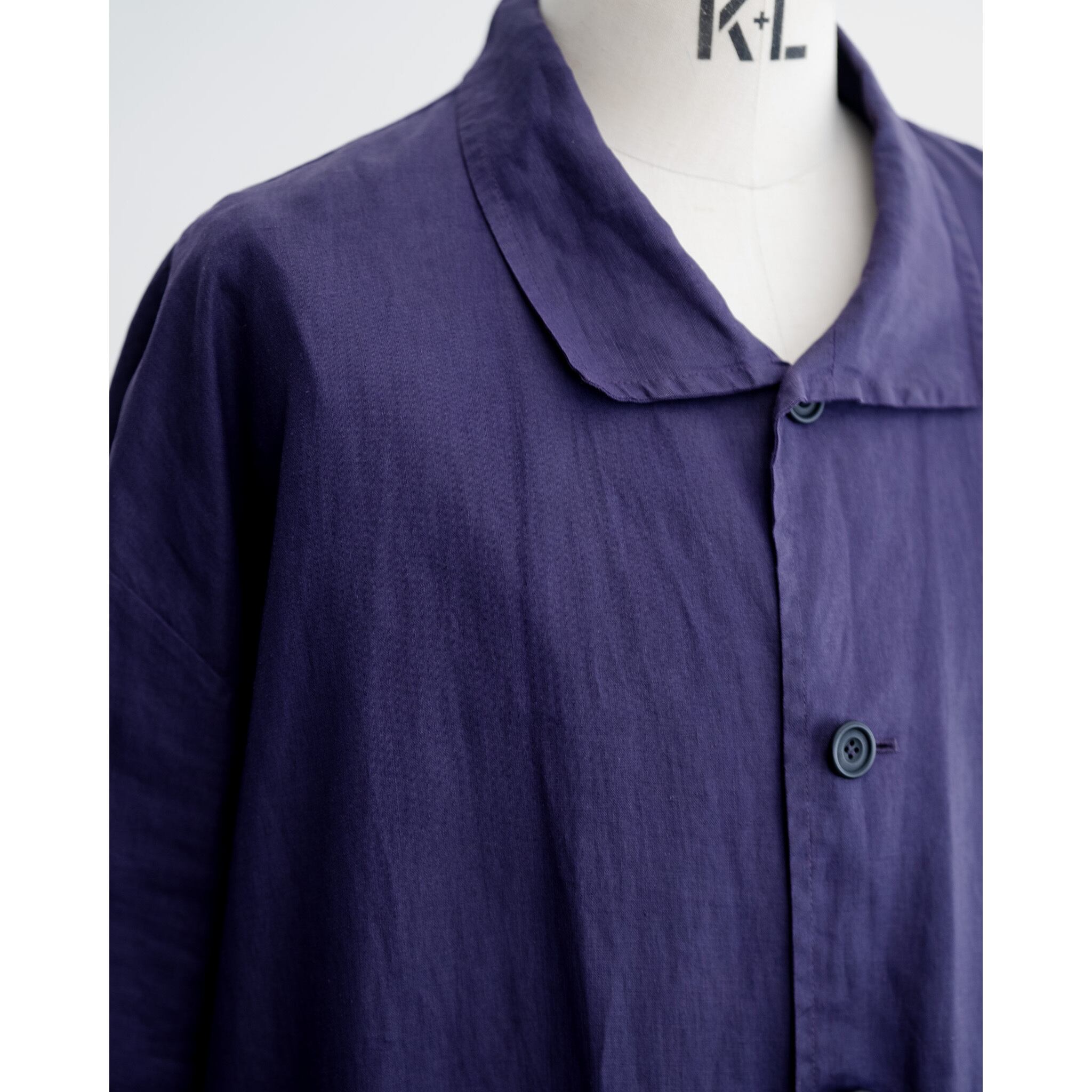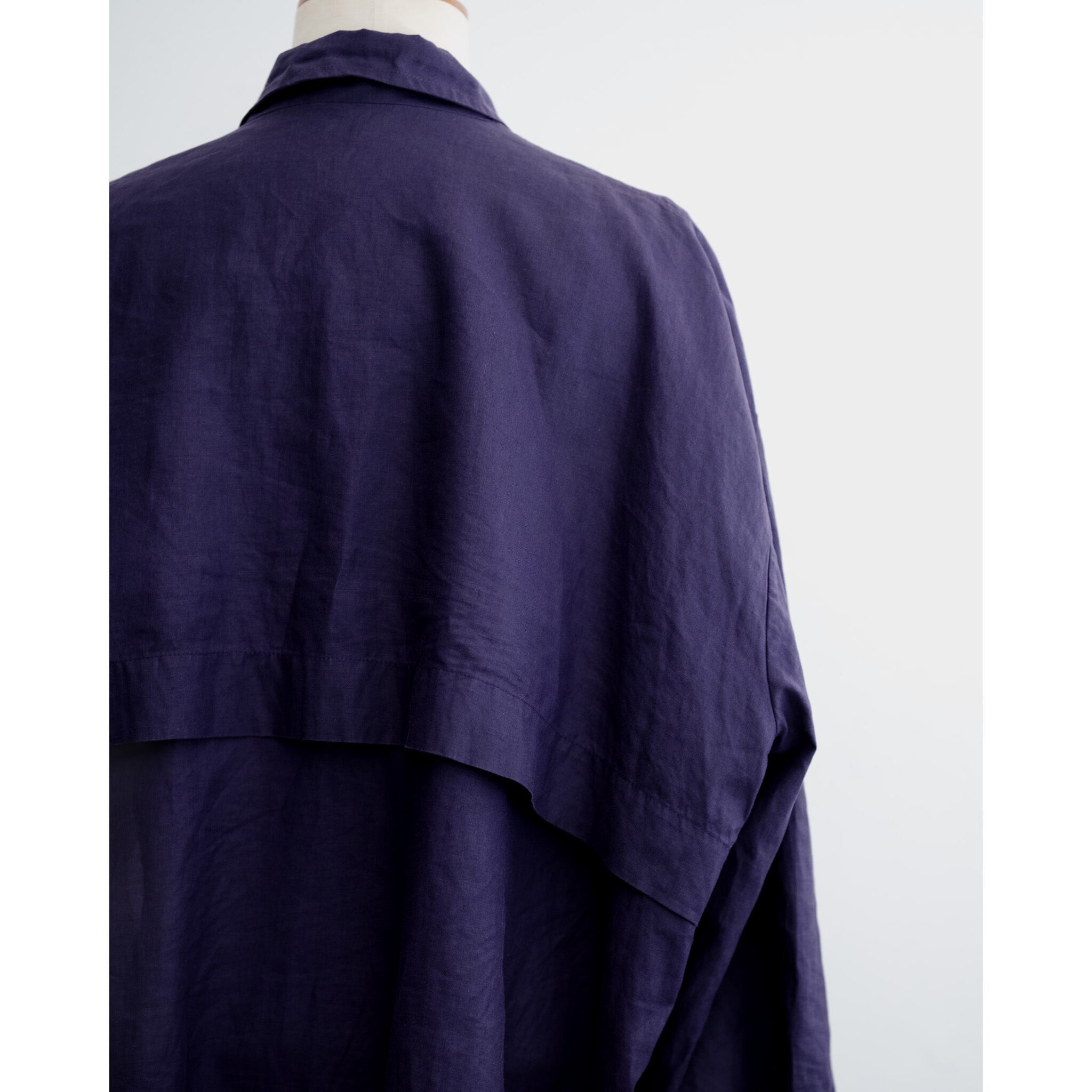 絶妙な色味のパープルは、生地感を生かした奥深い表情となり、動くたびに、光の当たり方が変わるたびに、目まぐるしく変わる色合いを放ちます。
