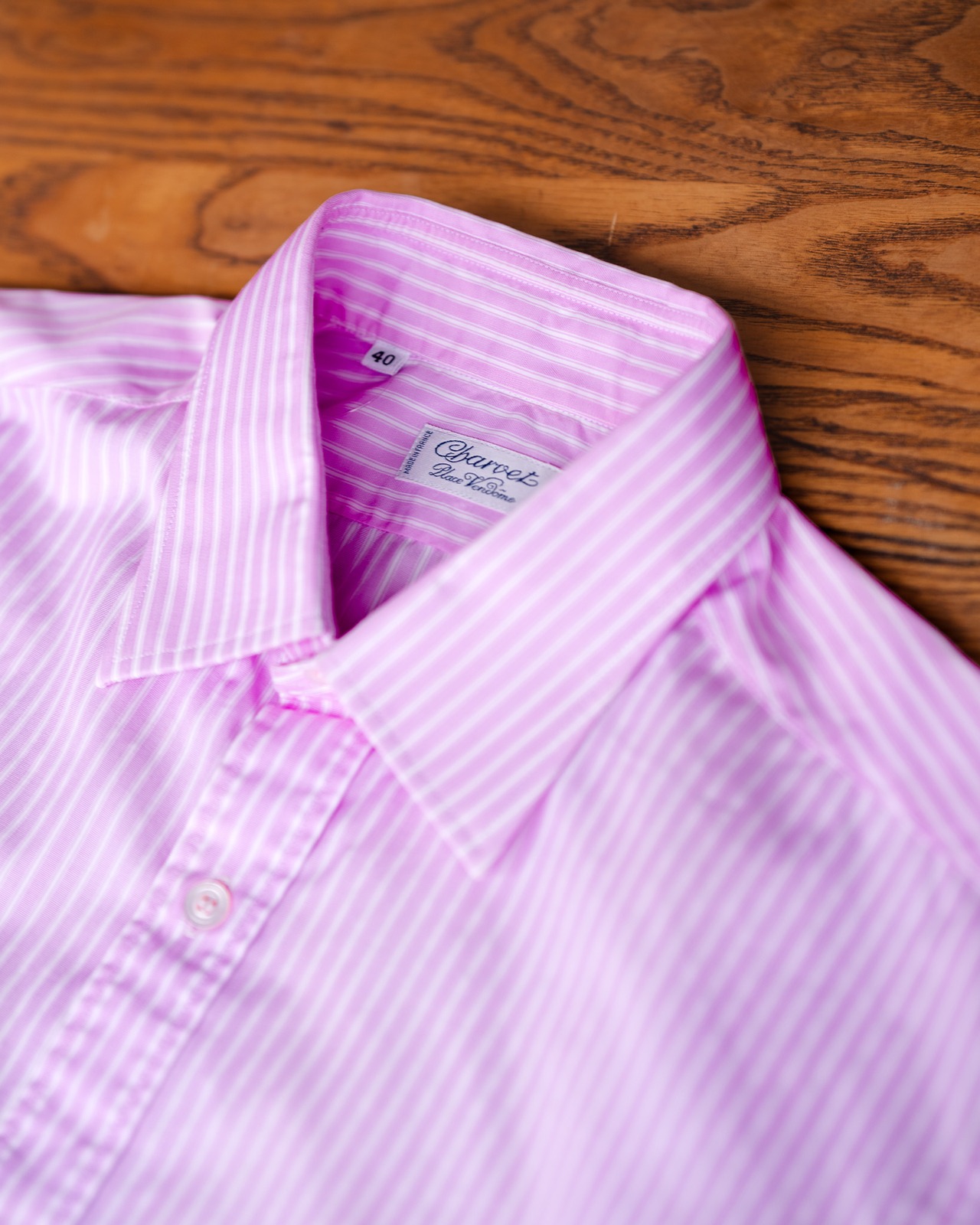 [80's~] "Charvet" Pink Stripe Single Cuffs Regular Collar Shirt