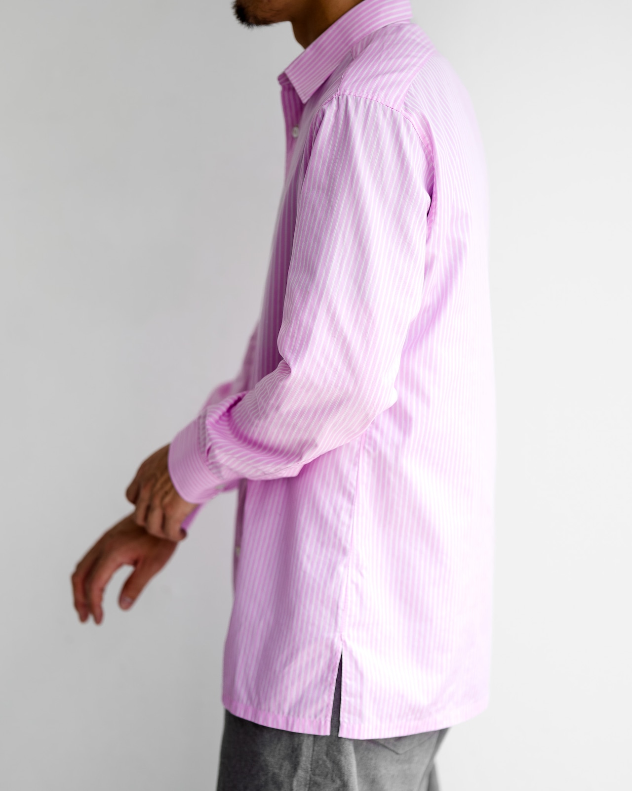 拘り抜いた生地は、ピッチの細い繊細なストライプパターンと合わさって、奥深い味わいが楽しめる表情を生み出します。