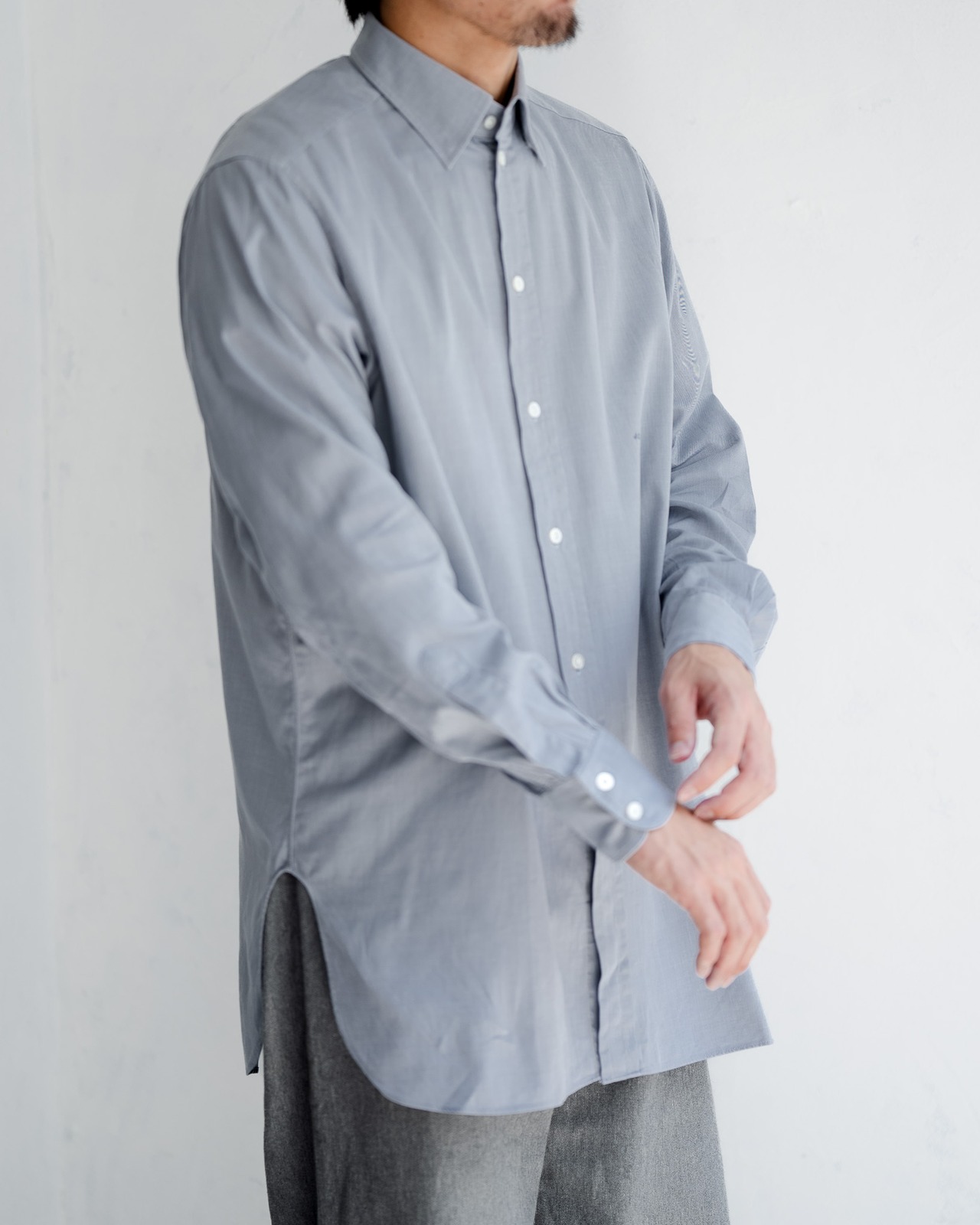 [80's~] "Charvet" BESPOKE MADE Grey Cotton Single Cuffs Shirt