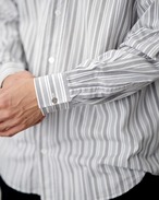 非常に繊細で、柔らかなストライプパターンが目を惹くレギュラーカラーシャツ。