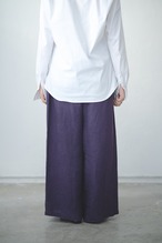 美しいパープルの色味が非常に目を惹くイージーパンツ。