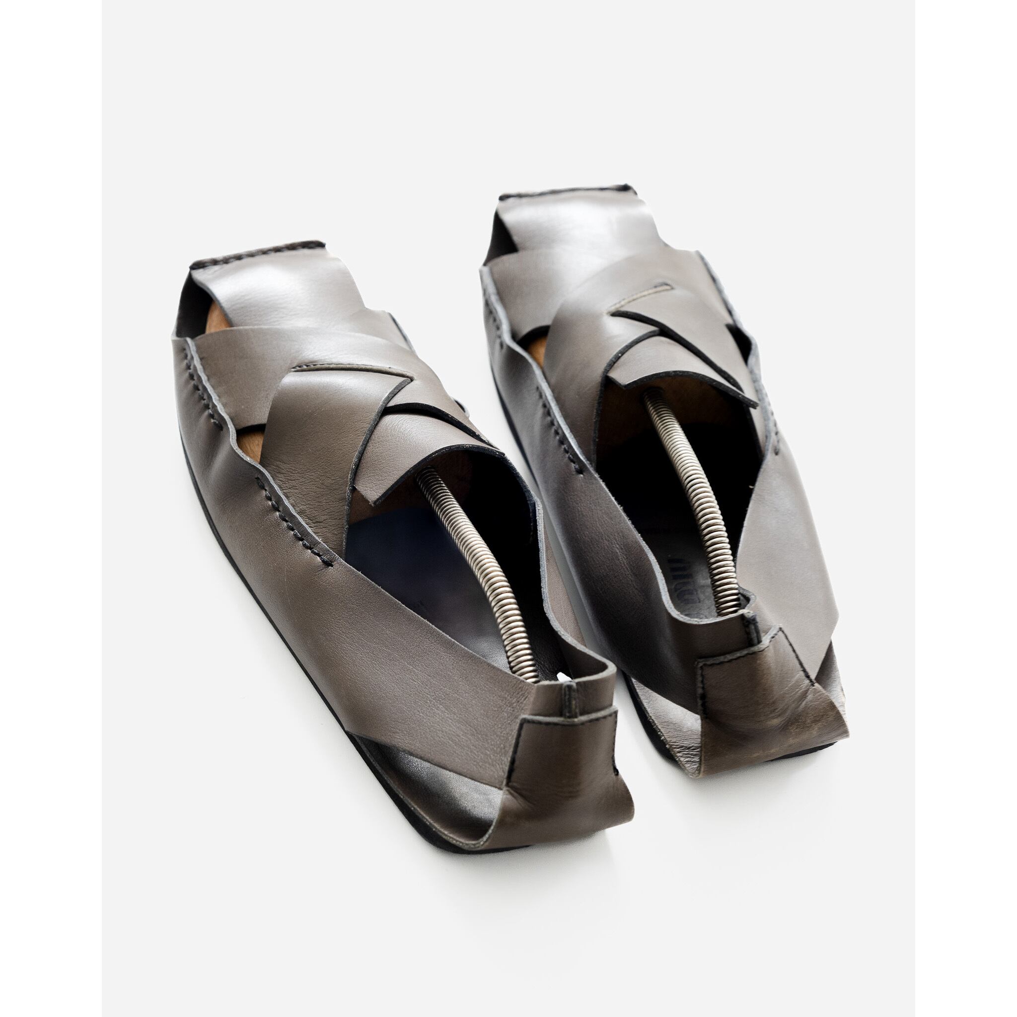 ブラウンともグレーとも言い難い独特なニュアンスカラーに、足の先端を包み込むようにして編まれた無骨なデザインが不思議なオーラを感じます。