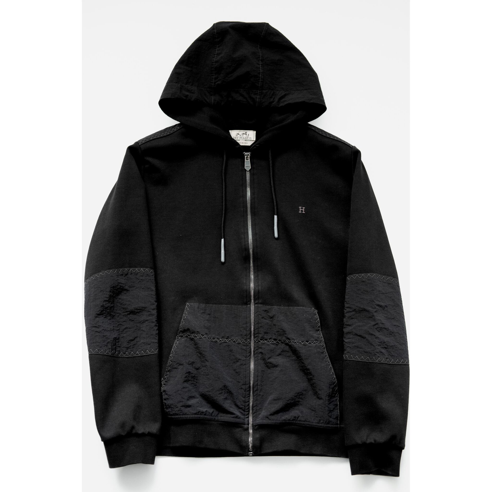 [00's] "Hermès" Cotton Nylon Jersey Contrast Zip up Parka