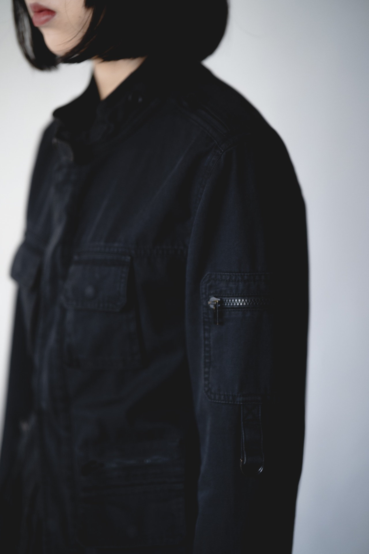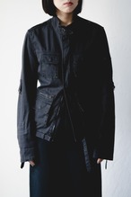 モーターサイクルジャケットをベースに、彼のプロダクトらしい細身でギミックに富んだディテールが目を惹く。