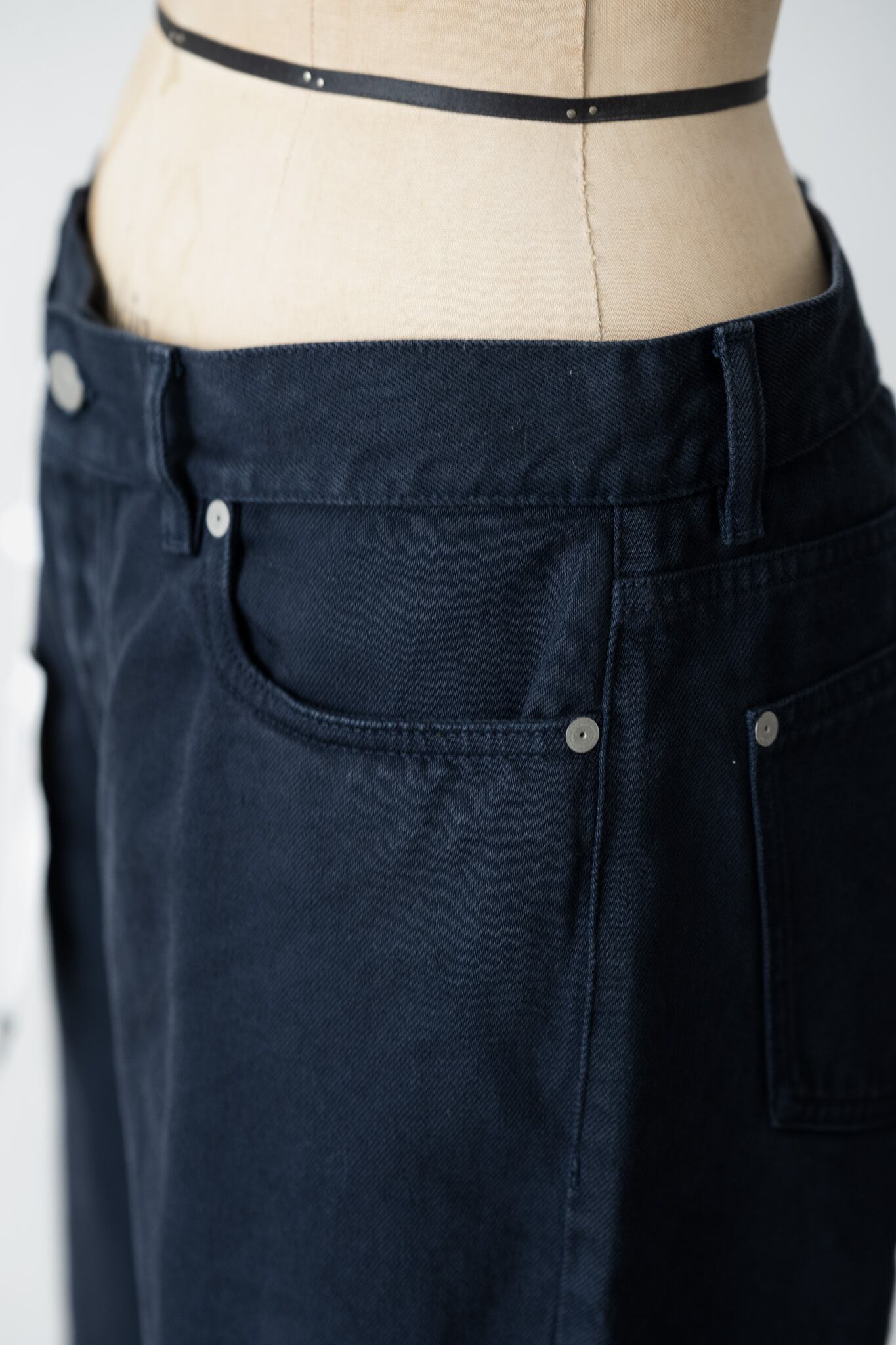 直線的なワイドストレートのシルエットが迫力のあるデニムトラウザー。