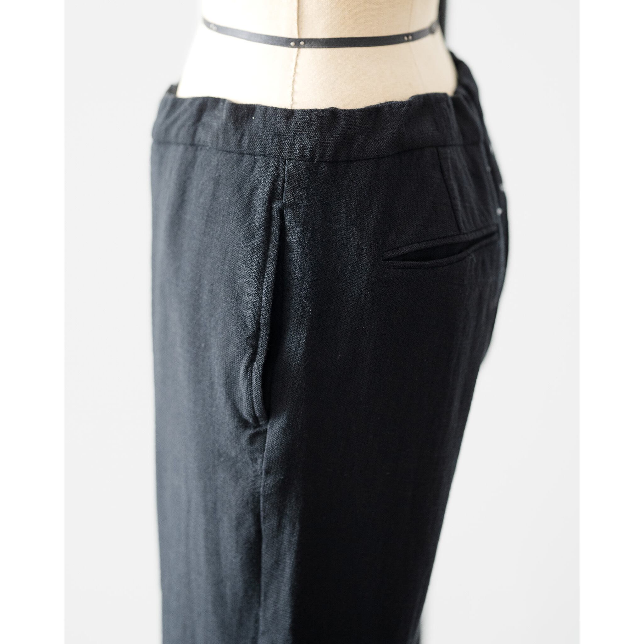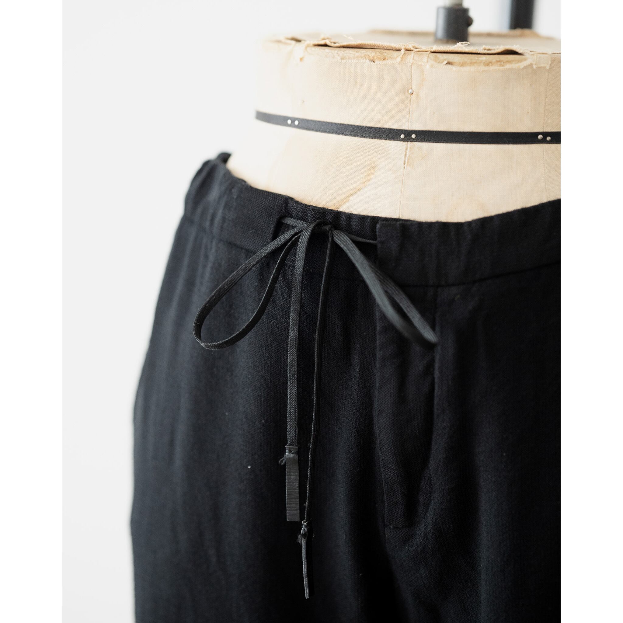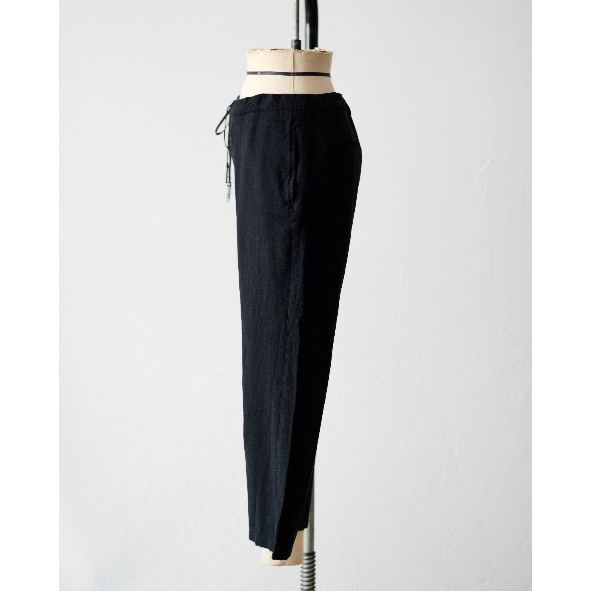左右非対称に施されたドローコードが目を惹くイージートラウザー。