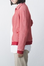 リブは柔らかなニット、鮮やかな赤色が心地の良いコントラストを創る。