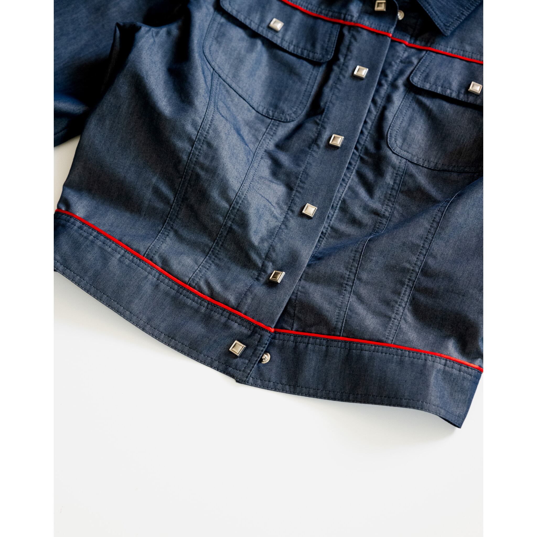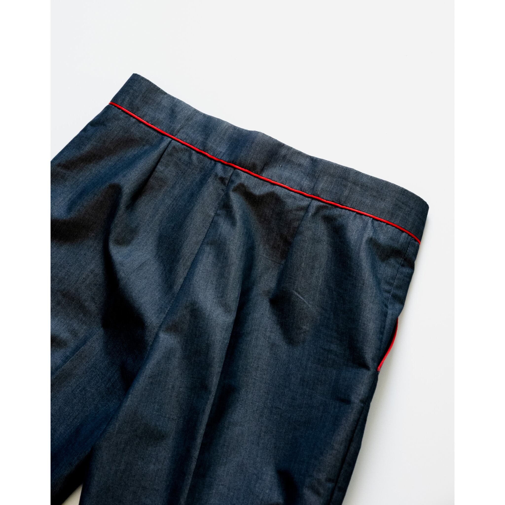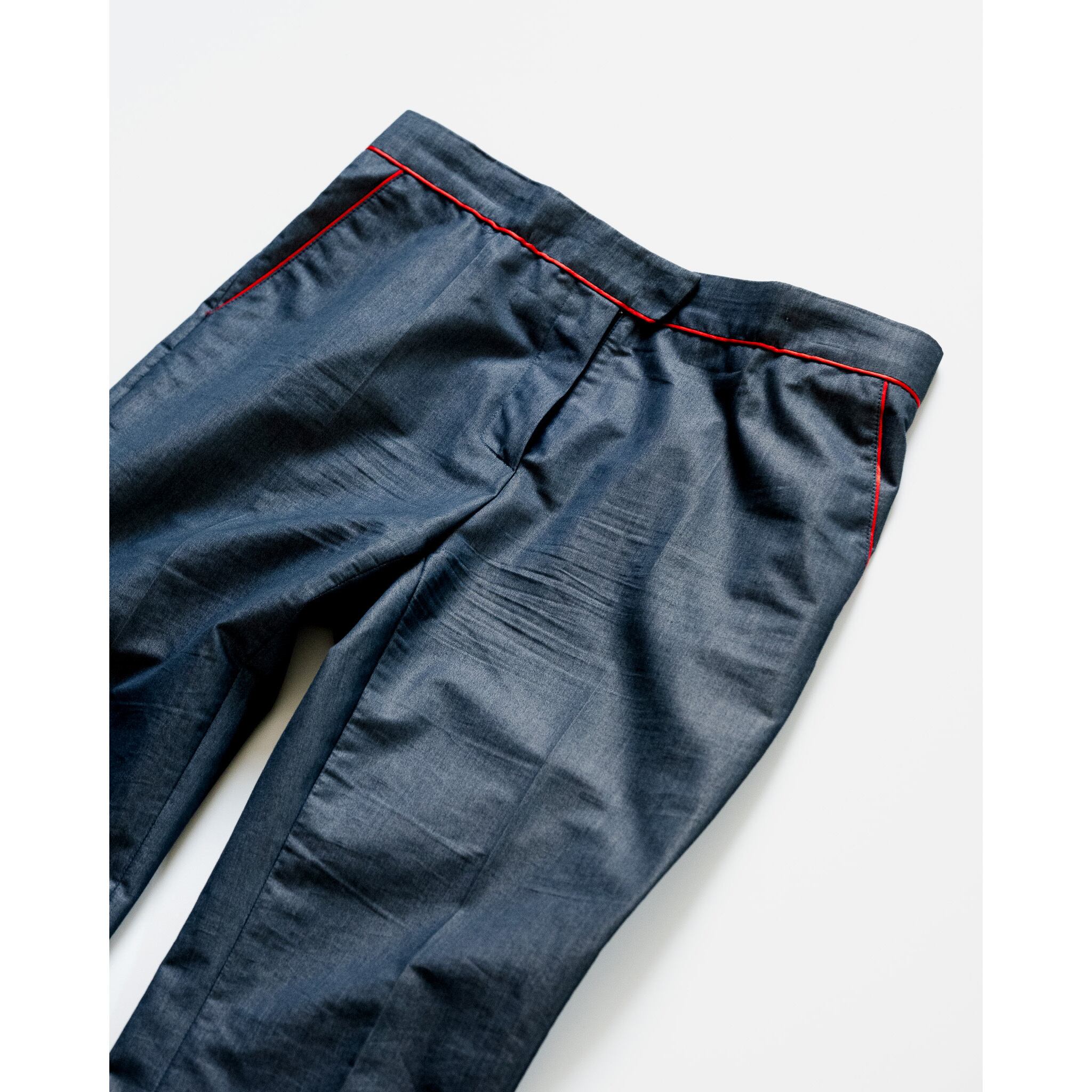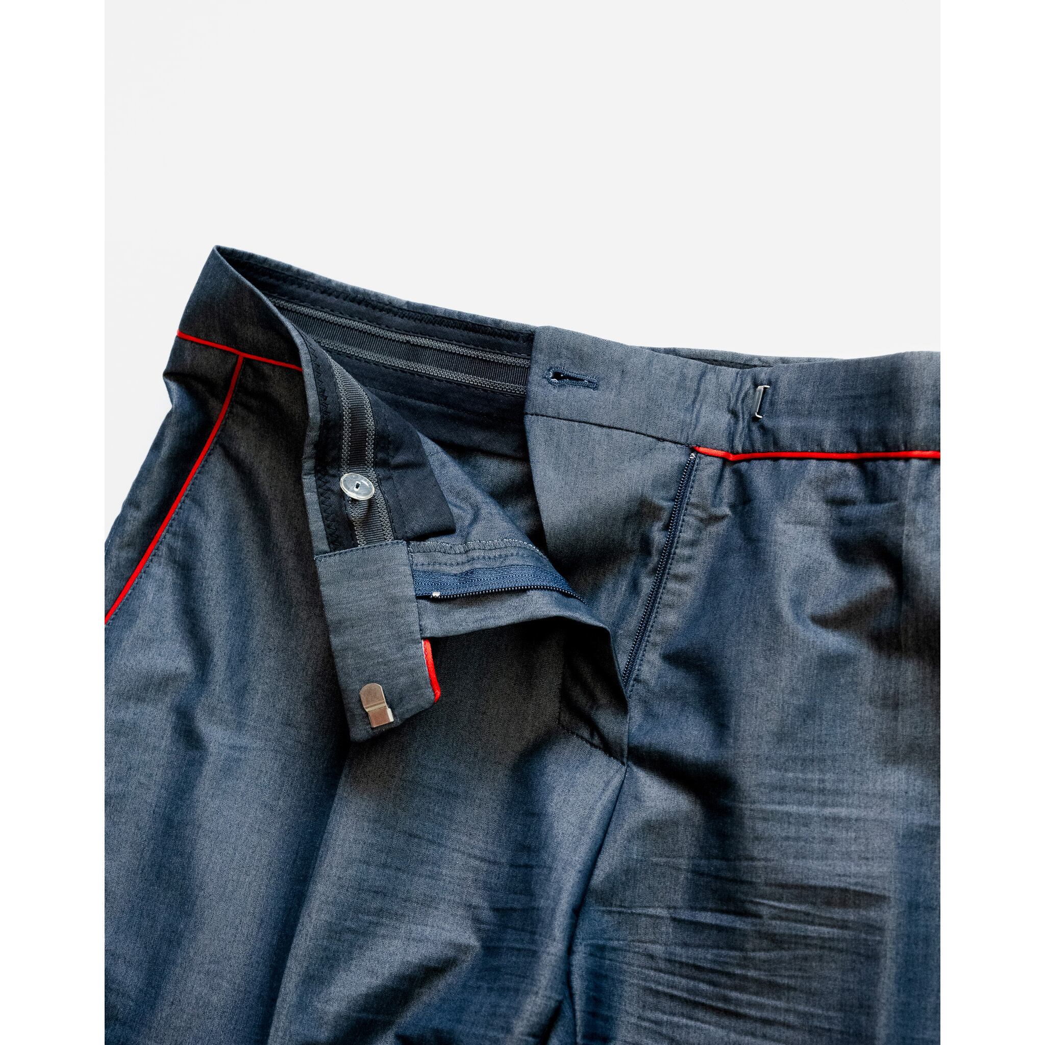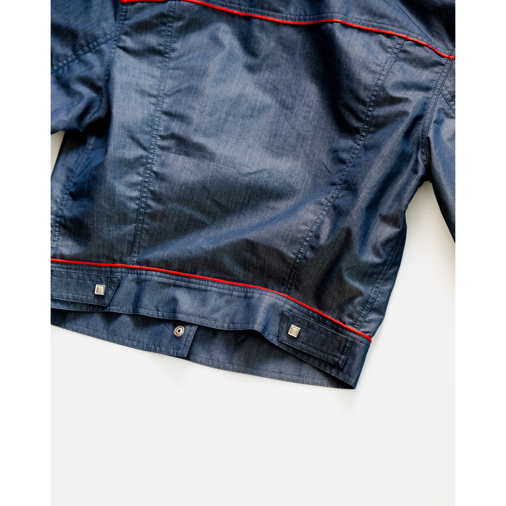 ウエスタンデニム風のデザインが施されていることで、伝統的なアメリカンカジュアルスタイルを思わせつつも、レッドの鋭いラインが現代的、いや近未来的なニュアンスをプラス。