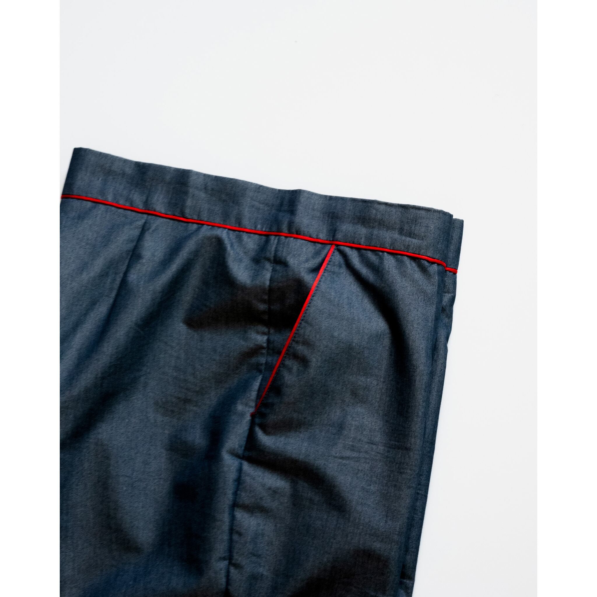 パンツは直線的ながらも身体の線を美しく見せるメリハリのある形。
