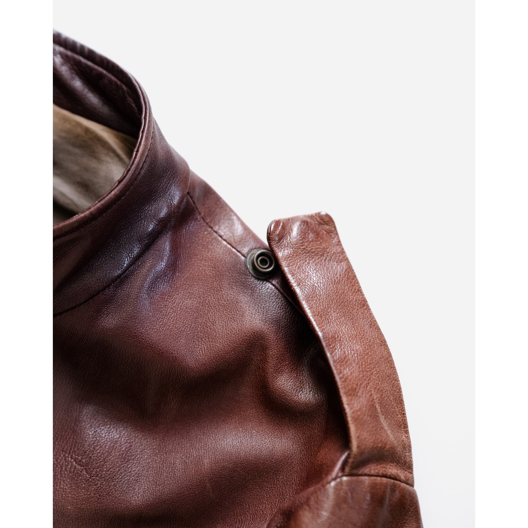 レザージャケット、ましてやミリタリーのデザインながらも、上品で柔らかな佇まいを感じられます。