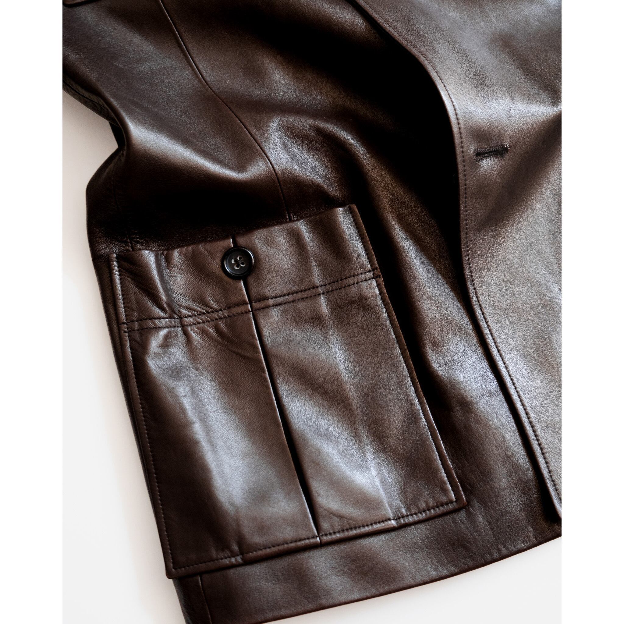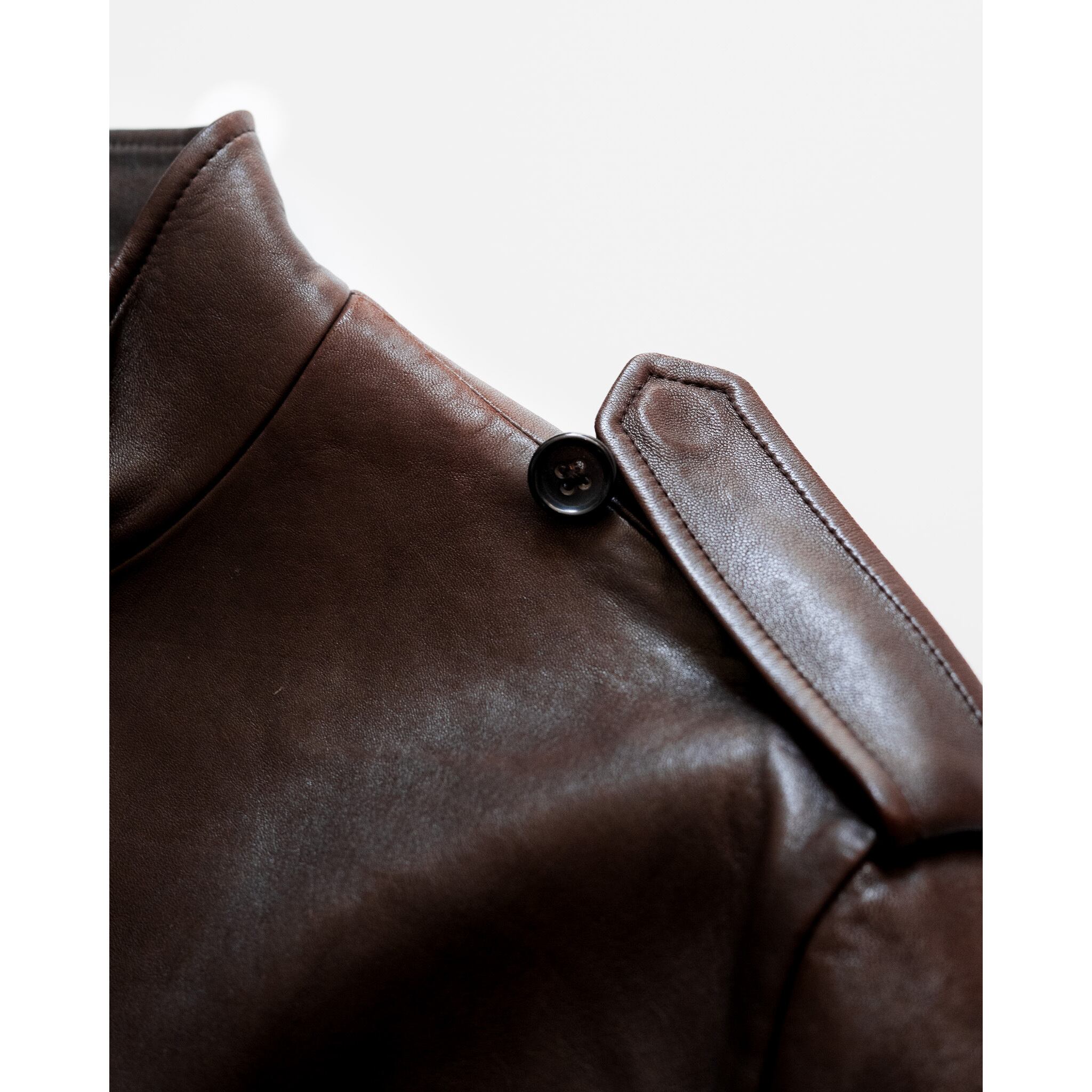 一言にミリタリーといえど、そのディテールは非常に精巧に作られていて、取り外しが可能な肩のエポレット、そしてスリットまでもレザーで作られたポケットが目を引きます。