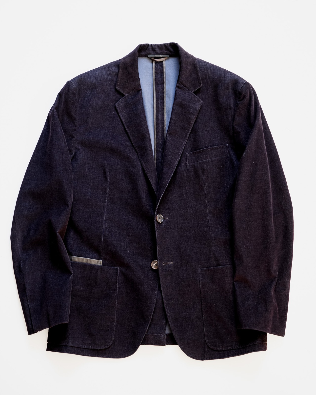 ラペルやポケットにはハンドステッチのような意匠が入り、袖をめくるとエルメスオレンジが使用された鮮やかなストライプの裏地。