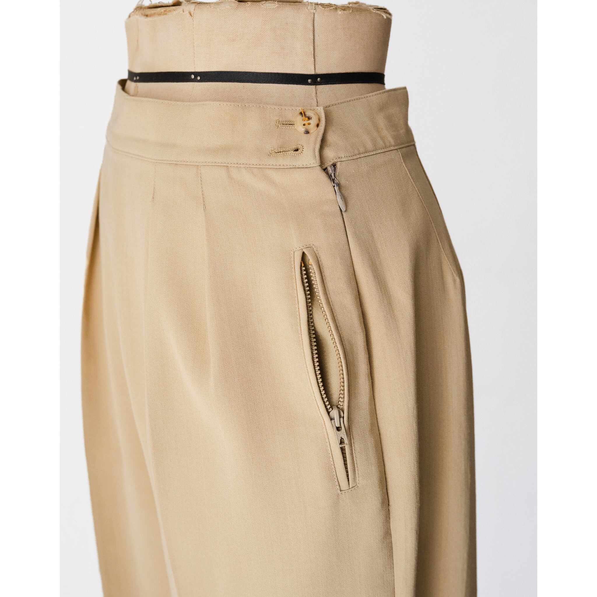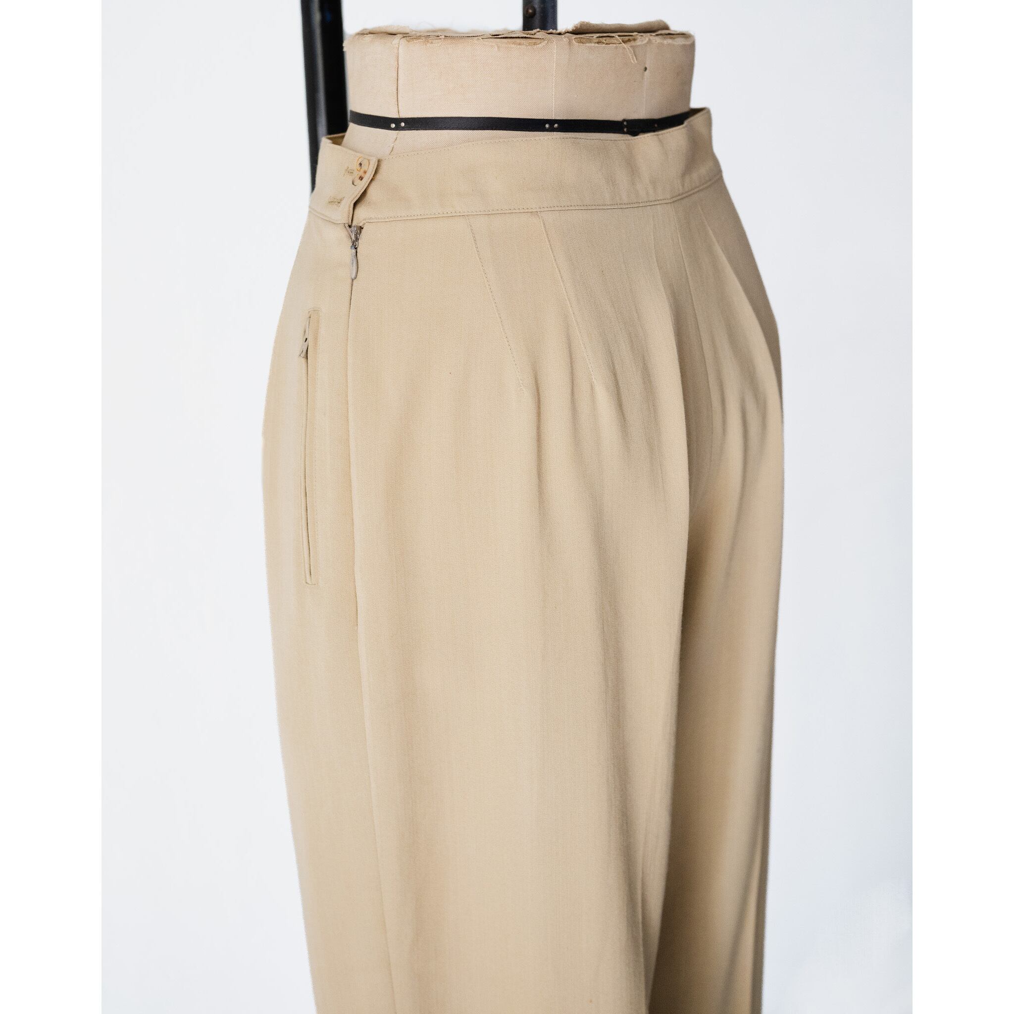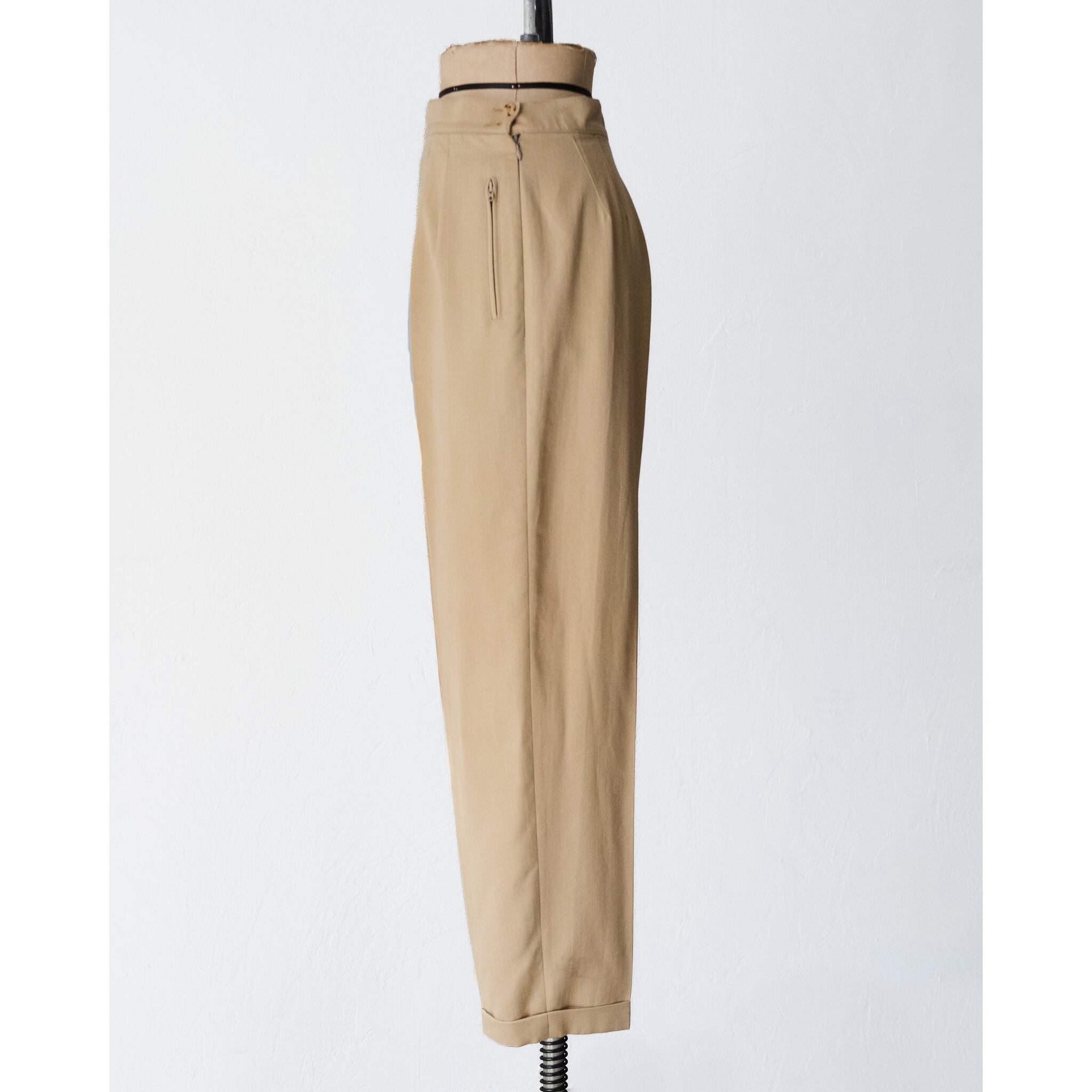 ジャケットはゆとりのある肩回りと対照的に、やや強めに施されたシェイプ、パンツはツータックのフロントと、ミニマルでありながらシックな雰囲気。