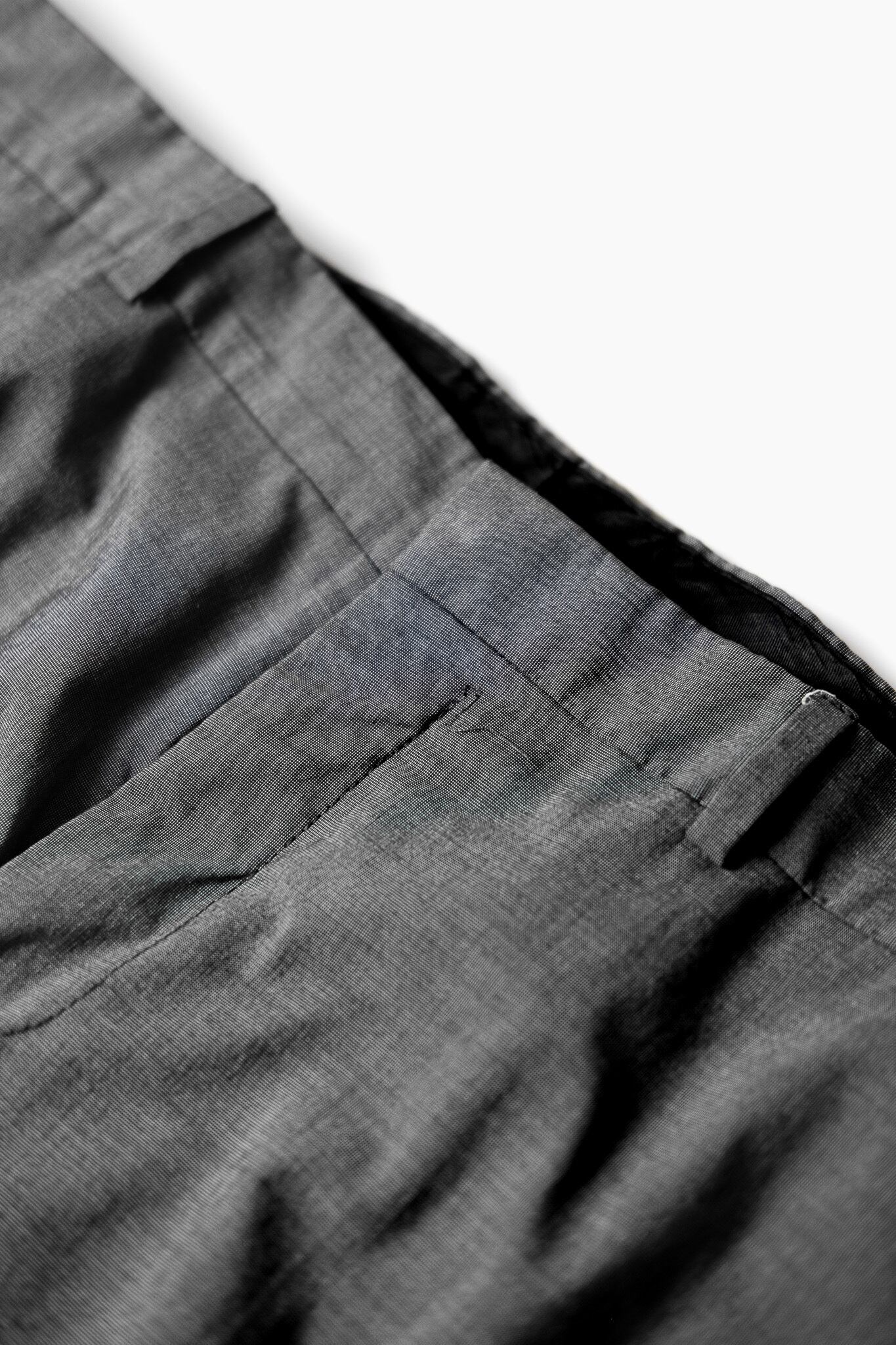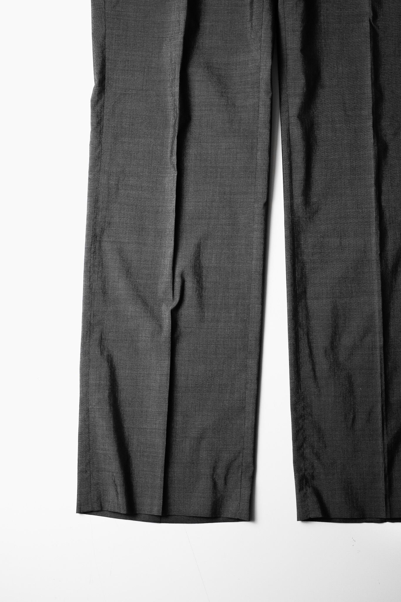 少しゆとりのある太腿周りから、裾にかけてテーパードのかかったスラックス。