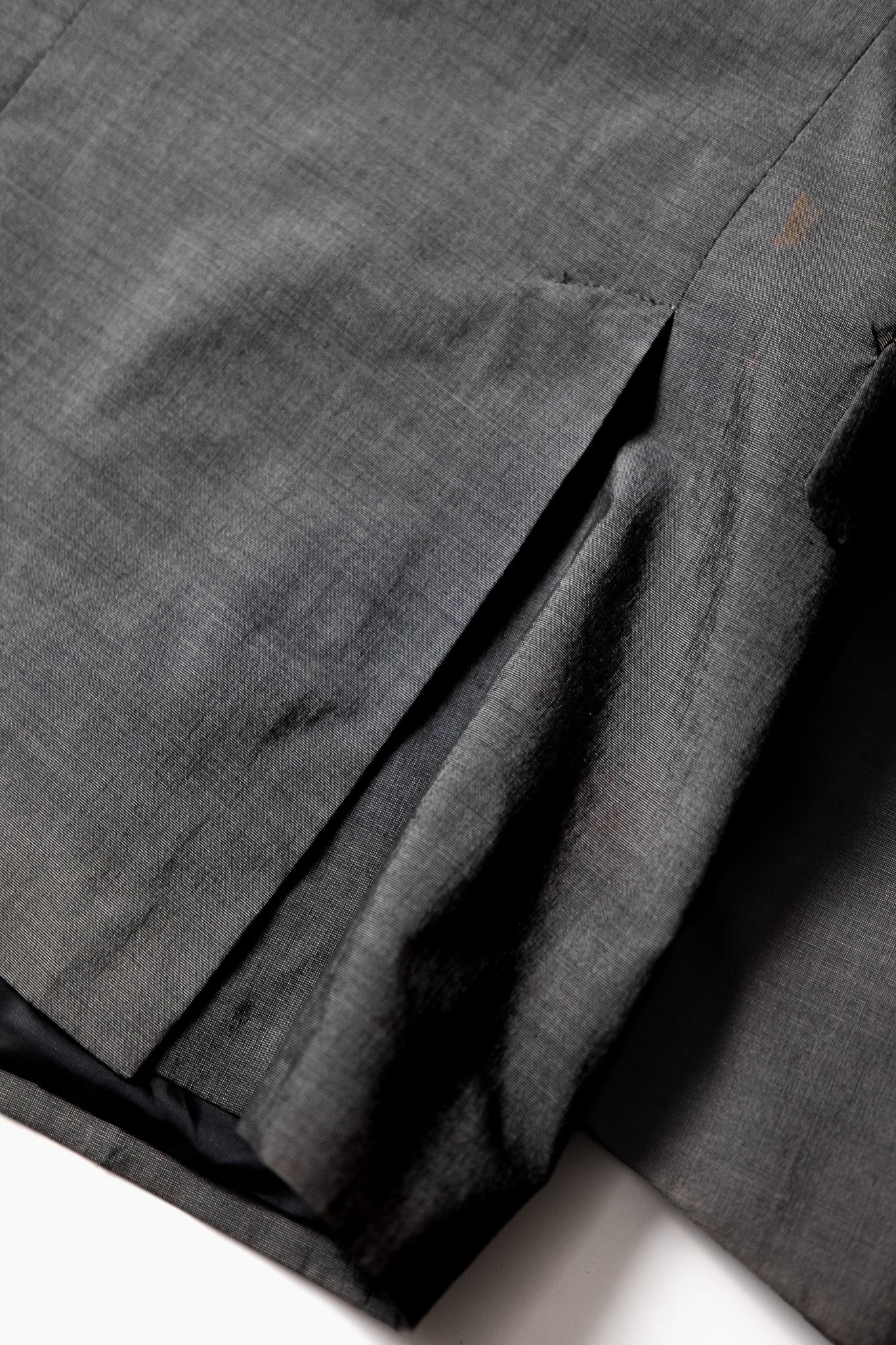 フロントの裾はラウンドがかかり、背面のサイドベンツはかなり深く取られています。